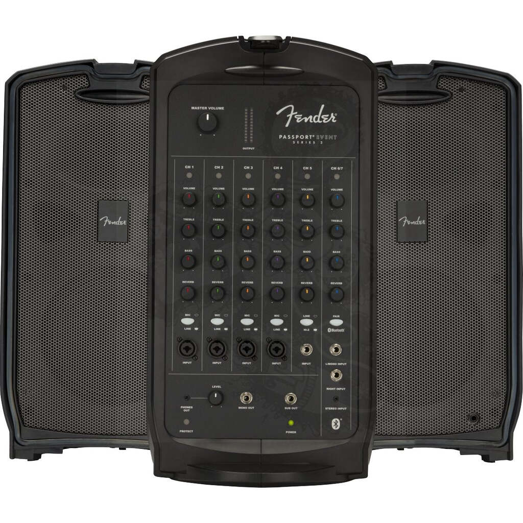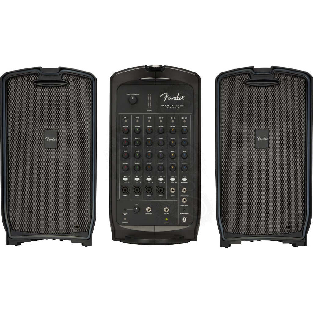 With versatile controls, great connectivity and go-anywhere convenience, the Passport® Event Series 2 portable audio system is perfect for amplifying voices, instruments and background music anywhere, anytime. Its full-range speakers, versatile features, friendly front-panel controls and 375 watts of power provide strong, clear and reliable Fender sound ideal for education, sporting and worship events; meetings, seminars and presentations; and gigs at parties, small clubs and coffeehouses. Passport Event Series 2 features combination XLR/¼” jacks for increased connectivity.