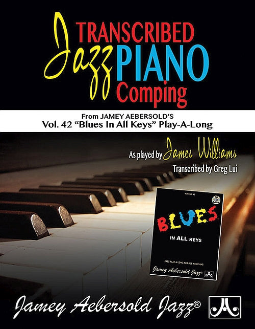 Finally! Piano comping transcribed from our best-selling Volume 42: Blues in All Keys! See how soulful jazz master James Williams negotiates the blues in all 12 keys, and you'll be ready for anything! Of course, the blues and ii-V7 voicings presented here are applicable to all other standards, as well. Those of you who already have the Volume 42: Blues in All Keys CD will enjoy playing along with the bass and drums by turning off the right channel.