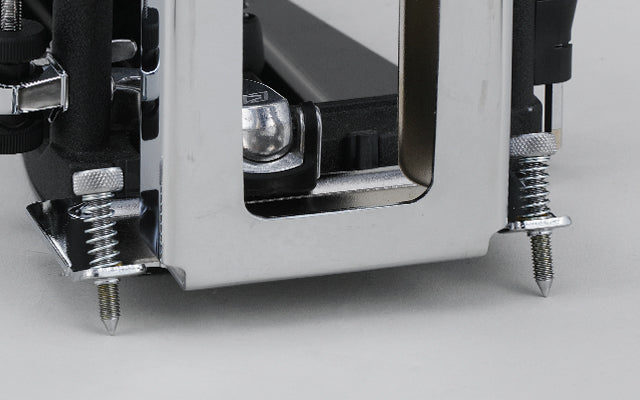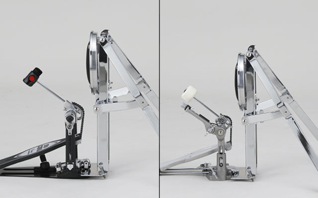 The Flush Frame provides enhanced bass drum pedal stability. Frame angle adjustment allows the bass drum pedal to sit fully flush on the floor for super solid connection between pedal and frame.