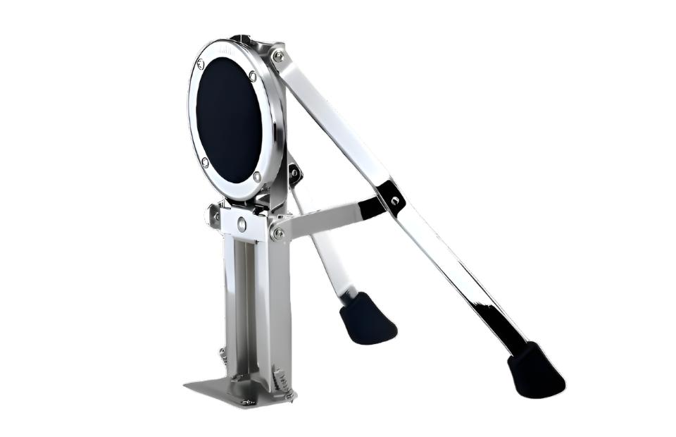 Customizing pad height (to accommodate different bass drum pedal frame heights and beater length) is easy to achieve by loosening four drum key head bolts. The pad can adjust up/down by 20mm.