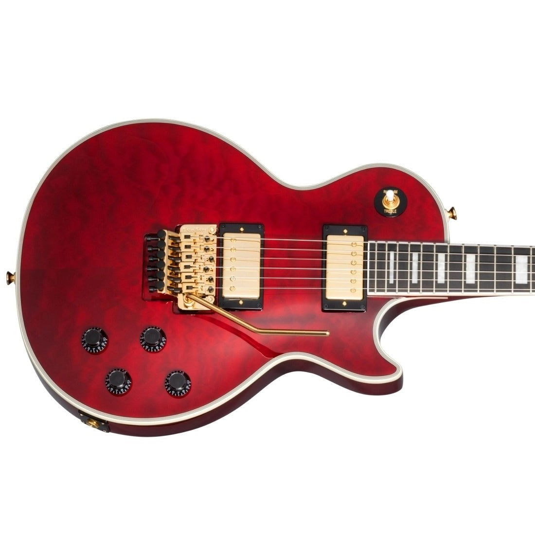 Created through extensive work with Alex Lifeson and Gibson, Epiphone's Alex Lifeson Les Paul Custom Axcess similarly redefines the boundaries of the classic Les Paul in an accessible, versatile package. This guitar carries all of the traditional tones that have made the Les Paul legendary, along with unprecedented levels of sonic and performance agility. The Alex Lifeson Les Paul Custom Axcess Standard carries powerful Epiphone Ceramic Pro neck and Pro Bucker 3 bridge pickups with push / pull coil splitting on the volume controls, along with a Floyd Rose 1000 Series tremolo - the world's most efficient vibrato. Along with all this, the Alex Lifeson Les Paul Custom Axcess still presents that timeless Les Paul look that has remained a classic for more than 60 years. Hardshell case included.