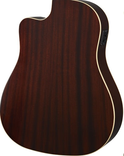 The legendary Gibson™ J-45™ has been a favorite of musicians ever since it was first introduced in 1942. Now Epiphone has released a new Inspired by Gibson™ J-45 Cutaway that gives players improved access to the upper frets while retaining all of the features that make the J-45 special to begin with, including the Sloped Shoulder body with a solid Sitka spruce top and solid mahogany back and sides, ma beautiful Aged Vintage Sunburst finish, a comfortable rounded C neck profile and a Fishman® Sonicore™ under-saddle pickup with the Fishman Presys II™ preamp featuring volume and tone controls.