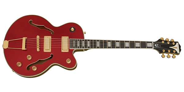 The next generation of "Kat" archtops featuring ProBucker™ FB720 mini humbuckers, the new UpTown Kat™ ES Collection is the next generation of Epiphones classic Kat archtop and features a true ES style semi-hollowbody archtop with newly designed Epiphone ProBucker™ FB720 mini humbuckers™, Graph Tech® nut, Ebony fingerboard, and Grover® Rotomatic tuners. Available in Sapphire Blue Metallic, Ruby Red Metallic, Emerald Green Metallic, and Topaz Gold Metallic.
