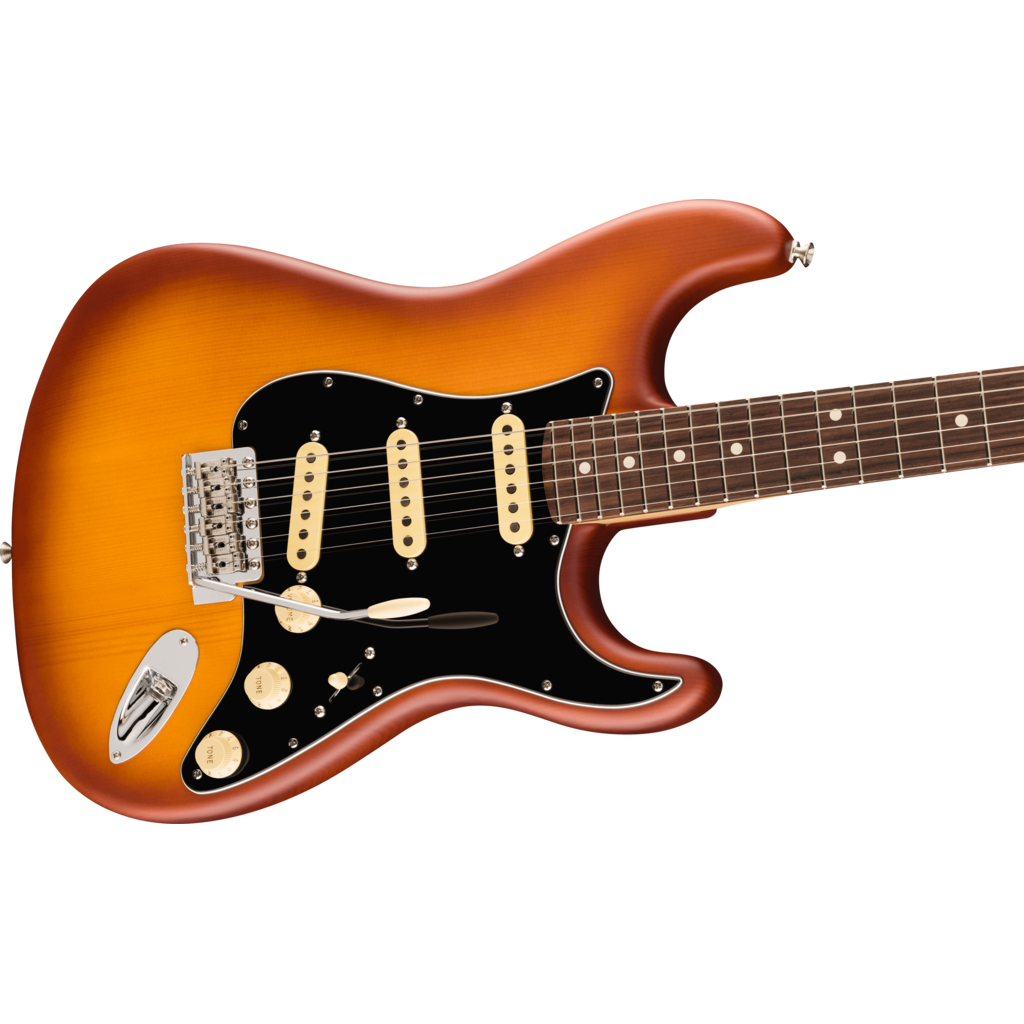 The Limited Edition American Performer Timber Stratocaster is available in three beautiful tonewood options. Choose Sassafras with a satin Mocha finish, Sugar Pine with a satin 2-Color Sunburst finish, or Spruce with a satin Honey Burst finish.