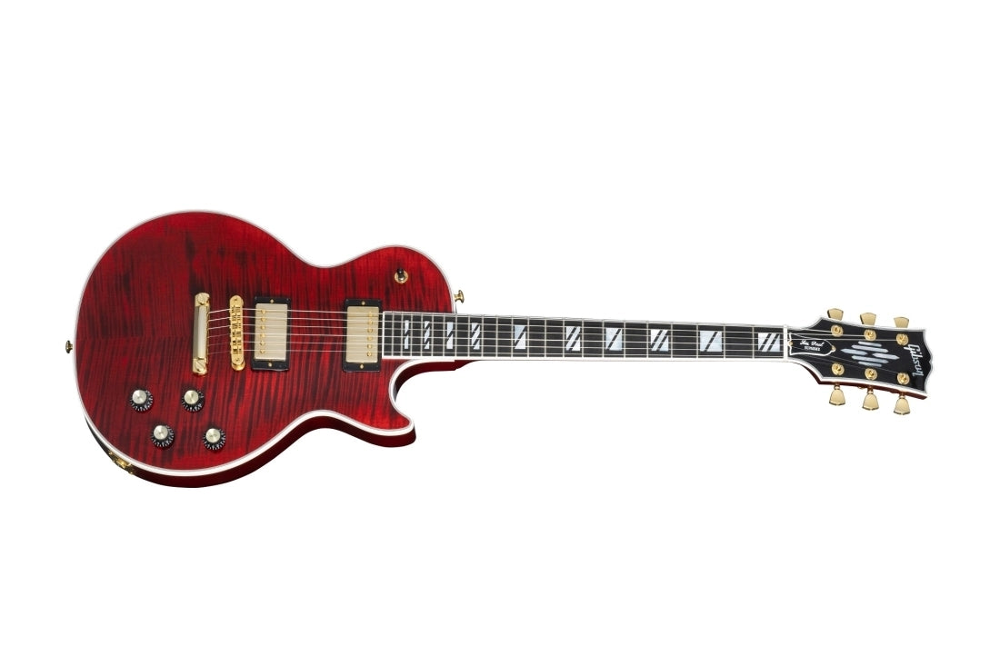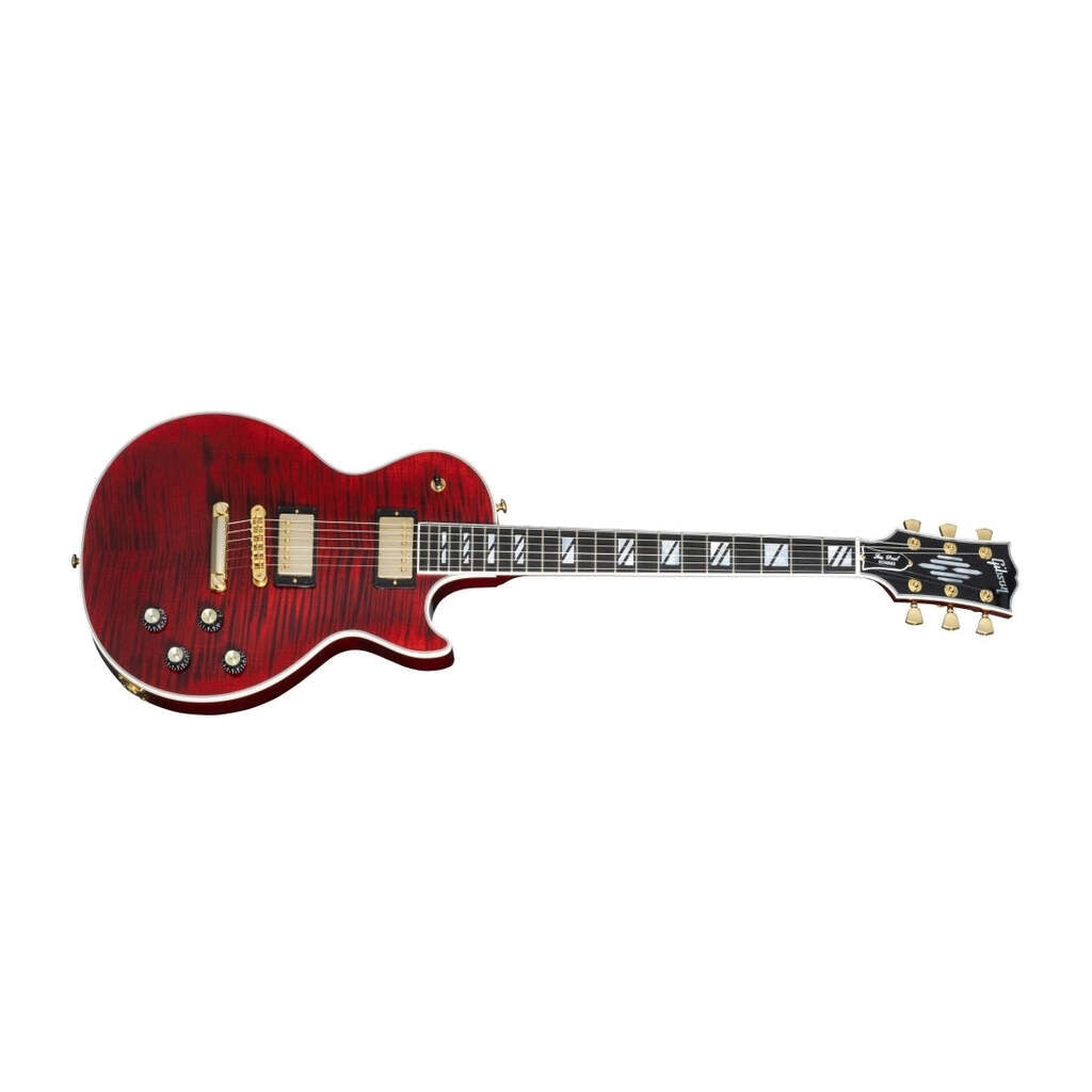 Gibson is excited to announce the return of the Les Paul Supreme. With a refreshed feature set, it is bound to overshadow everything else in sight and be one of the most exciting new releases of the year. It features a beautiful AAA-figured maple top on a mahogany body with Ultra-Modern Weight Relief. The mahogany neck has an ebony fretboard with a compound radius and Super Split Block mother-of-pearl inlays. The neck has a Modern Contoured Heel for exceptional upper fret access, and the headstock is adorned with a striking new mother-of-pearl inlay inspired by a design from the 1940s that was discovered in the Gibson archives. The Burstbucker Pro and Burstbucker Pro+ pickups are paired with push/pull Volume and Tone potentiometers for flexible coil tap, phase, and Pure Bypass switching. The three gorgeous finishes are elegantly highlighted with gold hardware, making this not only a great-sounding and highly flexible instrument but also an exceptionally beautiful-looking modern rock machine. A hardshell case is also included.