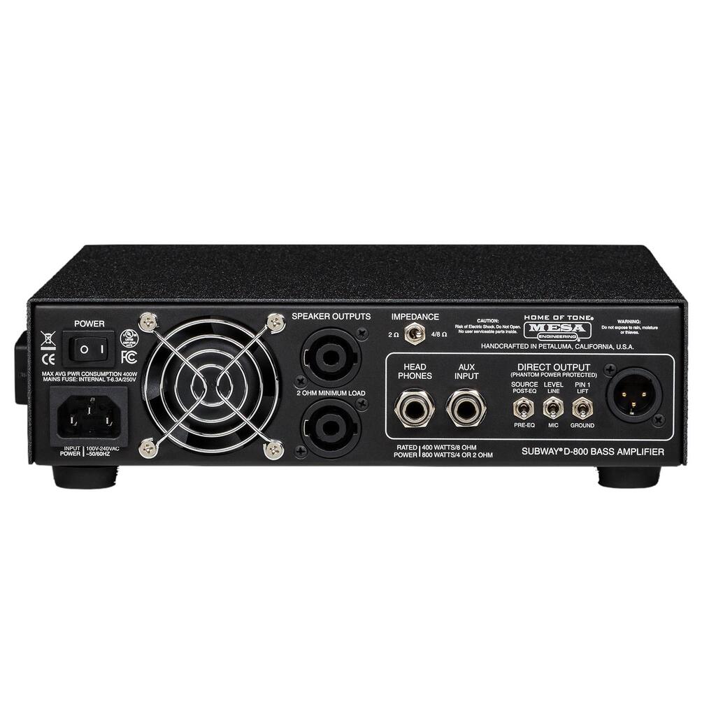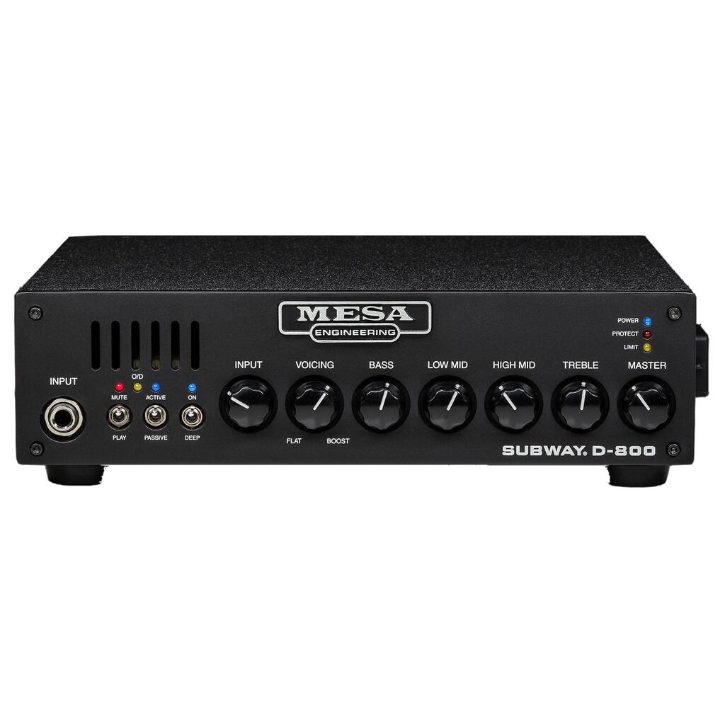 A FIRST-EVER-FOR-MESA®. THE ULTRA LIGHTWEIGHT, PROFESSIONAL LEVEL CLASS D SUBWAY® D-800™ FOR BASS Introducing the Subway® D-800™, where MESA®'s passion for Design Excellence and Portability meet the demand for Great Tone in a simple, accessible package. This first-ever-for-MESA ultra-lightweight, yet professionally power-rated Class D package for Bass boasts an easy to navigate, yet full-featured preamp with all the shaping control you’ll need coupled with a mighty 800 watt musical sounding, reliable, featherweight output section. The result is an amp that can command any venue from a small club to a large concert stage and anywhere in between, yet fits in the pocket of your gig bag! Built around a combination of signature circuits ranging from our classic tube models like the vintage Bass 400+™ and more recent Bass Strategy™ 8:88™, to the mosfet powered accuracy and mid-focused definition of the Big Block™ 750 and M9 Carbine™ the new SUBWAY D-800 embodies the best qualities from the entire MESA Bass lineage and unveils a unique new voice all its own. CONTROL OVER POWER Subway D-800 Bass Amp Mute Active Passive Switch Tone shaping in the SUBWAY D-800 begins with the Front Panel INPUT section, which is comprised of the INPUT jack and two switches; a MUTE and an ACTIVE/PASSIVE switch for tailoring the input headroom to your instrument. The MUTE switch silences the signal from the INPUT jack to the SPEAKER output, HEADPHONE output and DI output for silent tuning. Convenient Indicator LEDs are provided on the right side of the Front Panel for all switched functions. Subway D-800 Bass Amp Rotary Voice Control VOICE CONTROL on the SUBWAY D-800 is a continuously variable rendering that allows fine-tuning of your sound from a more “flat” response to a radically scooped midrange sound with the lows and highs boosted. DEEPER STILL Still not enough bottom you say… we listen and obey. For all those who need that extra huge Tone, we’ve included a DEEP switch that further enhances low end and puts an unmistakable sub-low component into the mix. 4-BAND EQ Further Tone shaping is handled by our 4-Band Fixed, Rotary EQ Section comprised of BASS, LOW MID, HIGH MID and TREBLE Controls. While the BASS and TREBLE controls deliver sweet, musically useful regions of low end fundamental and top end clarity, it’s the two powerful overlapping MID Bands that allow pinpoint accuracy when sculpting the important attack region and body of your Tone. LOW MID fills in the higher bottom end and determines fullness and bloom, while the HIGH MID helps you define how your sound tracks with the drums and where you want to sit in the mix. With these four controls as your foundation and the VOICING control as the finishing touch, or even vice versa, any sound you desire is only a quick twist away. FIND YOUR VOICE While VOICE controls have appeared on several MESA Bass designs, here on the SUBWAY D-800, we opted for a continuously variable rendering that allows fine-tuning of your sound from a more “flat” response to a radically scooped midrange sound with the lows and highs boosted. This sweep-able version of the VOICING control allows near infinite shaping and let’s you decide the degree of “sauce” that’s right for your individual Bass and musical style. CONNECTIVITY Pro features are abundant on the D-800 Rear Panel and all of your interfacing needs are provided for here. SPEAKON SPEAKER OUTPUT jacks allow sturdy connection to the enclosure of your choice. An IMPEDANCE switch allows you to optimize the SUBWAY’s mighty output power for a variety of speaker configurations and wiring schemes. Regardless of your impedance requirements, the SUBWAY delivers its authoritative power and great Tone in full measure. Subway D-800 Bass Amp Headphone Out HEADPHONE and AUX INPUTS are provided so you can enjoy the SUBWAY’s great sound without disturbing others. Further inspiration is available for solo enjoyment by connecting pre-recorded music, a sequencer or a drum machine to the AUX Input and playing to accompaniment while using headphones. PRACTICE PRIVATELY, PLAY PRIVATELY. OUTPUT FOR ALL Subway D-800 Bass Amp Direct Out DIRECT OUTPUT - A standard XLR D.I. OUTPUT provides switching for pre/post routing, mic or line level output and a ground switch to aid in curing ground noise problems when interfacing with other gear. A HEADPHONES OUTPUT is provided so you can enjoy the SUBWAY’s great sound without disturbing others. Further inspiration is available for solo enjoyment by connecting pre-recorded music, a sequencer or a drum machine to the AUX Input and playing to accompaniment while using headphones. A comprehensive DIRECT OUTPUT section is included in the SUBWAY’s platform so you can share your Tone with the world of recording and/or reinforcement and provides a full set of options for your D.I. needs. The standard MALE 3-Pin XLR is controlled via 3 mini toggles that determine both SOURCE (PRE or POST) and LEVEL (MIC or LINE) as well as a PIN 1 LIFT option on the XLR to aid in curing Ground noise problems when interfacing with Consoles of all types. FEATURES Made in Petaluma, CA USA with the World's Finest Materials Class D Power with 8/4 or 2 Ohm Impedance Switch for optimum Power to Load Performance 800 Watts @ 4 or 2 Ohms (400 @ 8) Active/Passive Input Switch Play/Mute Switch Preamplifier features: Input Gain with Clip Indicator (O/D LED), Variable Voicing (Flat to Vintage Scoop), Fully Active 4-Band EQ (+/- 12dB of Bass, Low-Mid, High-Mid, Treble) plus Deep Switch (for enhanced low-end) and Master Volume Balanced XLR Line Out with Pre/Post, Line/Mic & Ground Lift Switches Headphone Output Auxiliary Input Protection & Limit LED Indicators 2 Speakon Speaker Output Jacks Fan Cooled Gig Bag w/Strap