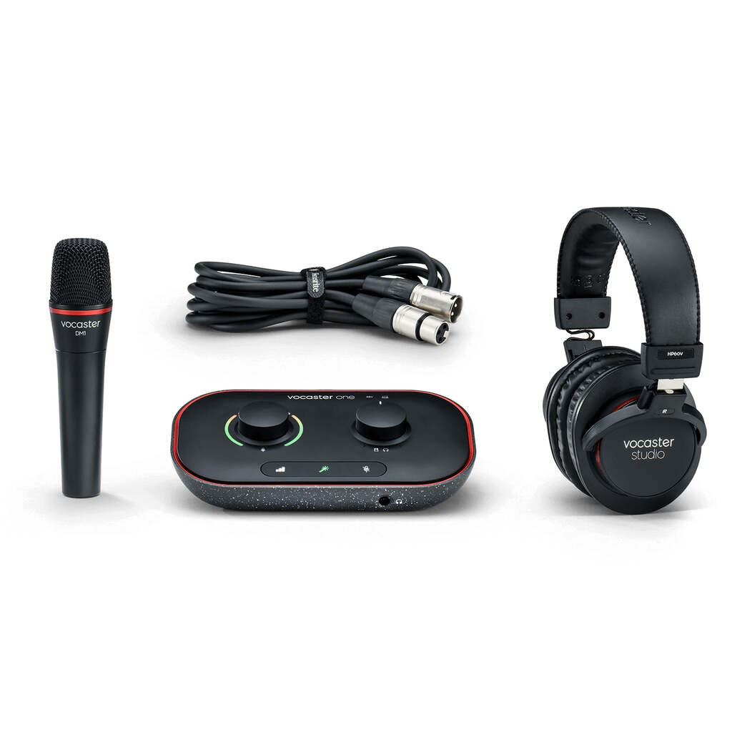 Step it up with Vocaster One Studio, which includes our dynamic microphone and closed-back headphones so that you can elevate your podcast straight away.