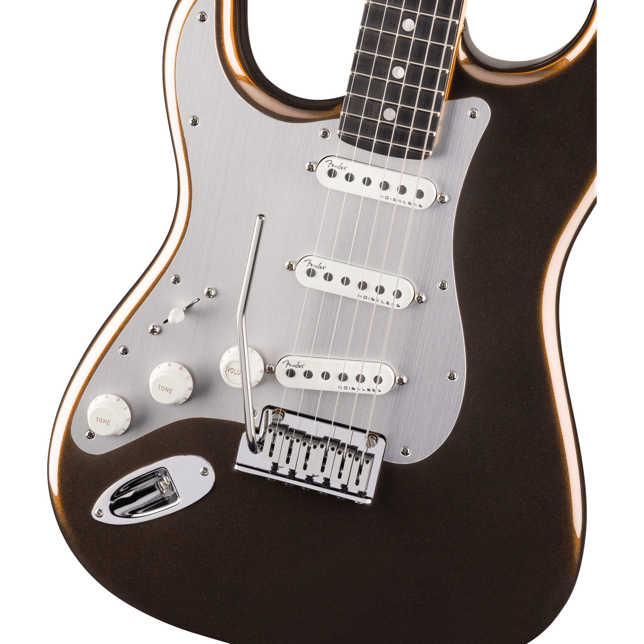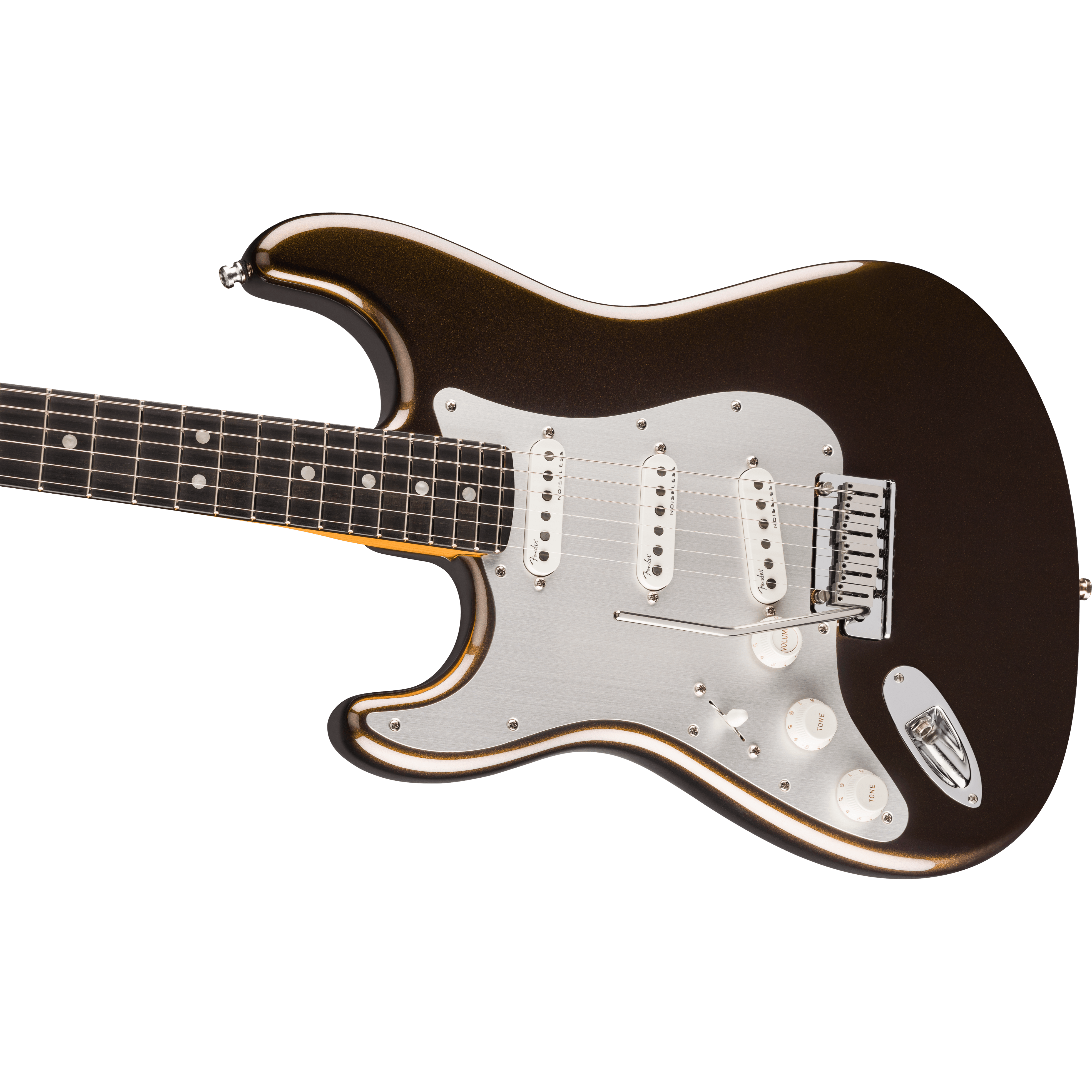 Under the hood, a trio of Ultra II Noiseless™ Vintage Strat® pickups deliver everything from sweet crystalline cleans to searing leads, all without a hint of hum. Our patented S-1™ switch cleverly unlocks additional pickup configurations for even more tonal variety. Additional road-ready features include 2-Point American Ultra synchronized tremolo with pop-in arm, polished stainless steel block saddles, cold rolled steel block, deluxe locking tuners, soft-touch knobs and 1-ply anodized aluminum pickguard.