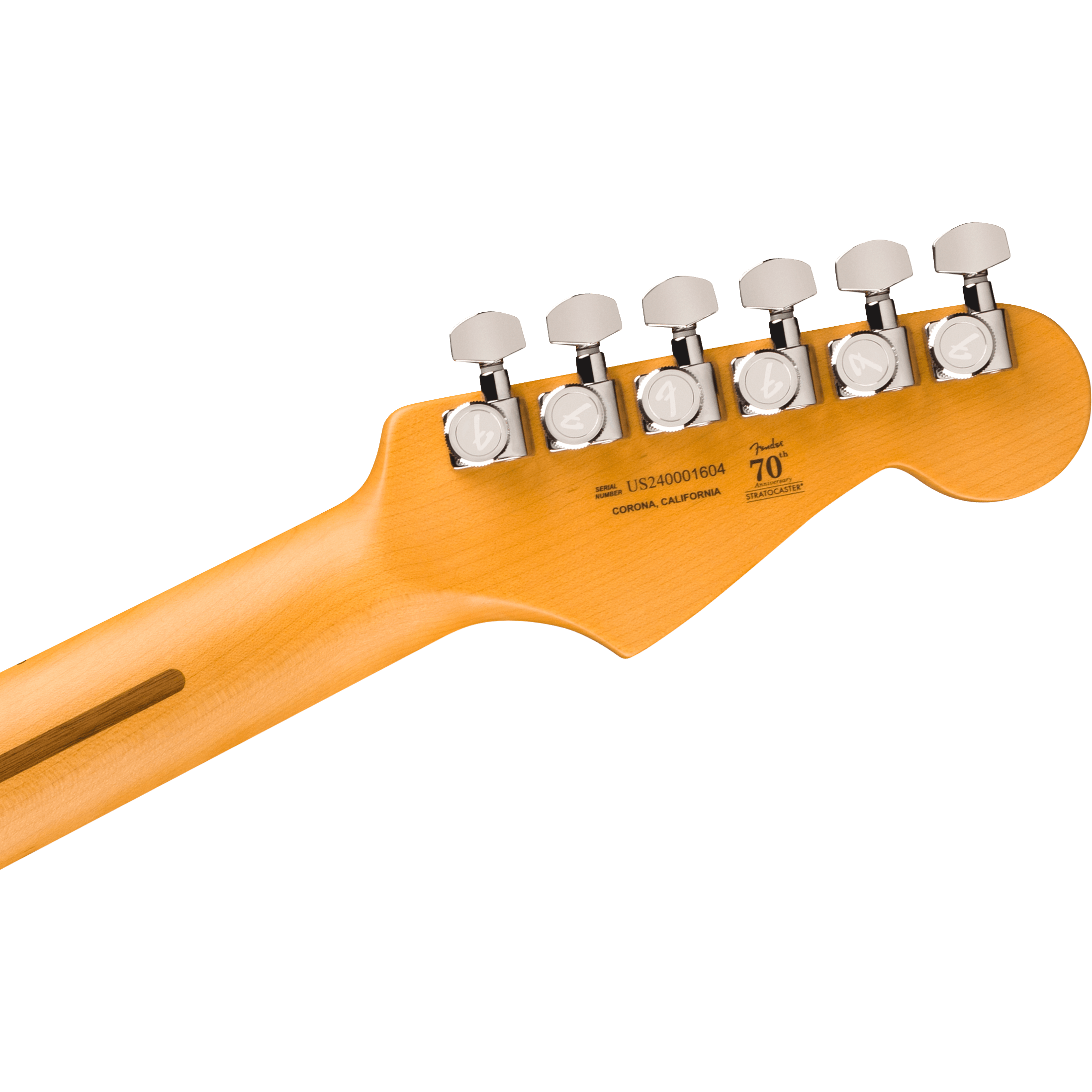 Under the hood, a trio of Ultra II Noiseless™ Vintage Strat® pickups deliver everything from sweet crystalline cleans to searing leads, all without a hint of hum. Our patented S-1™ switch cleverly unlocks additional pickup configurations for even more tonal variety. Additional road-ready features include 2-Point American Ultra synchronized tremolo with pop-in arm, polished stainless steel block saddles, cold rolled steel block, deluxe locking tuners, soft-touch knobs and 1-ply anodized aluminum pickguard.