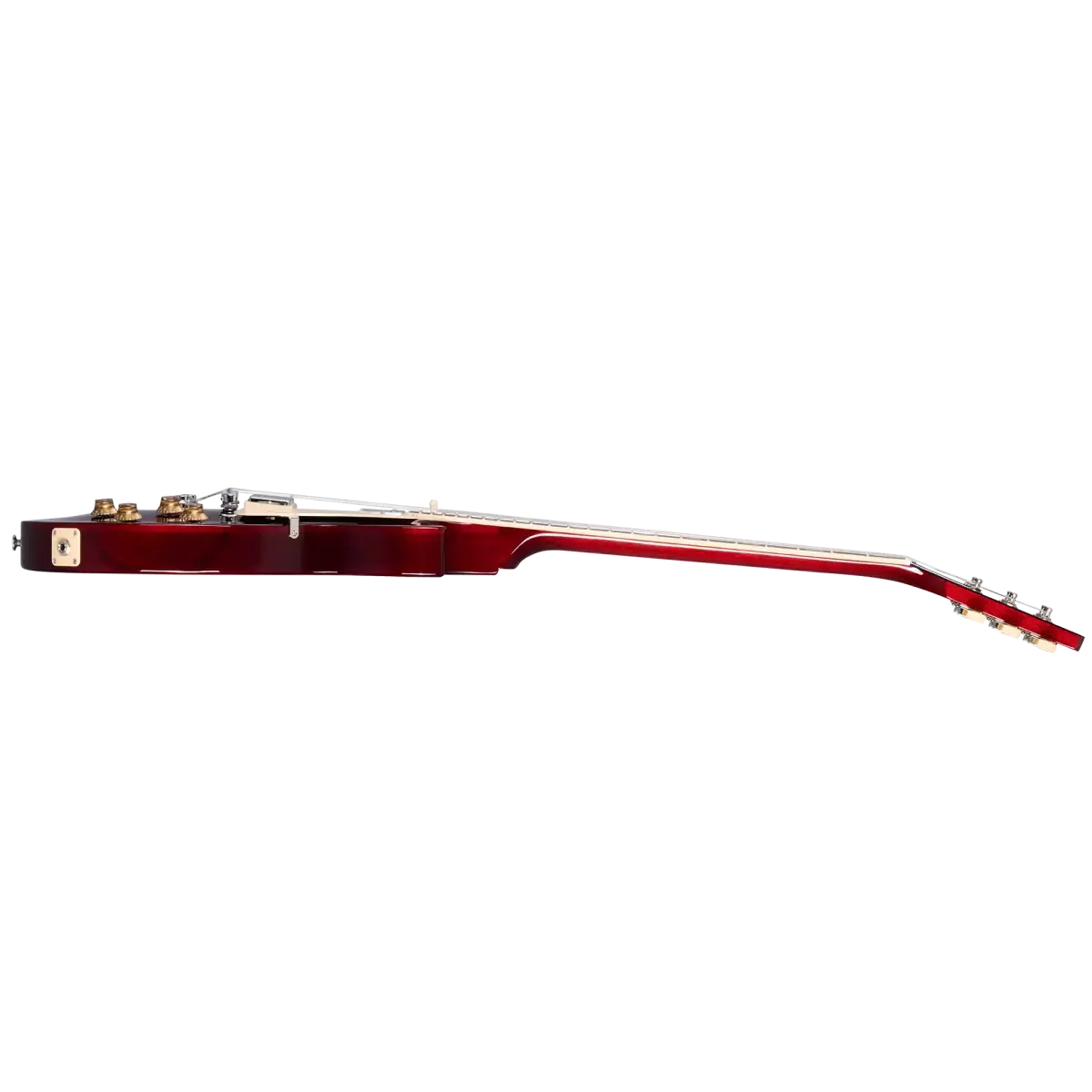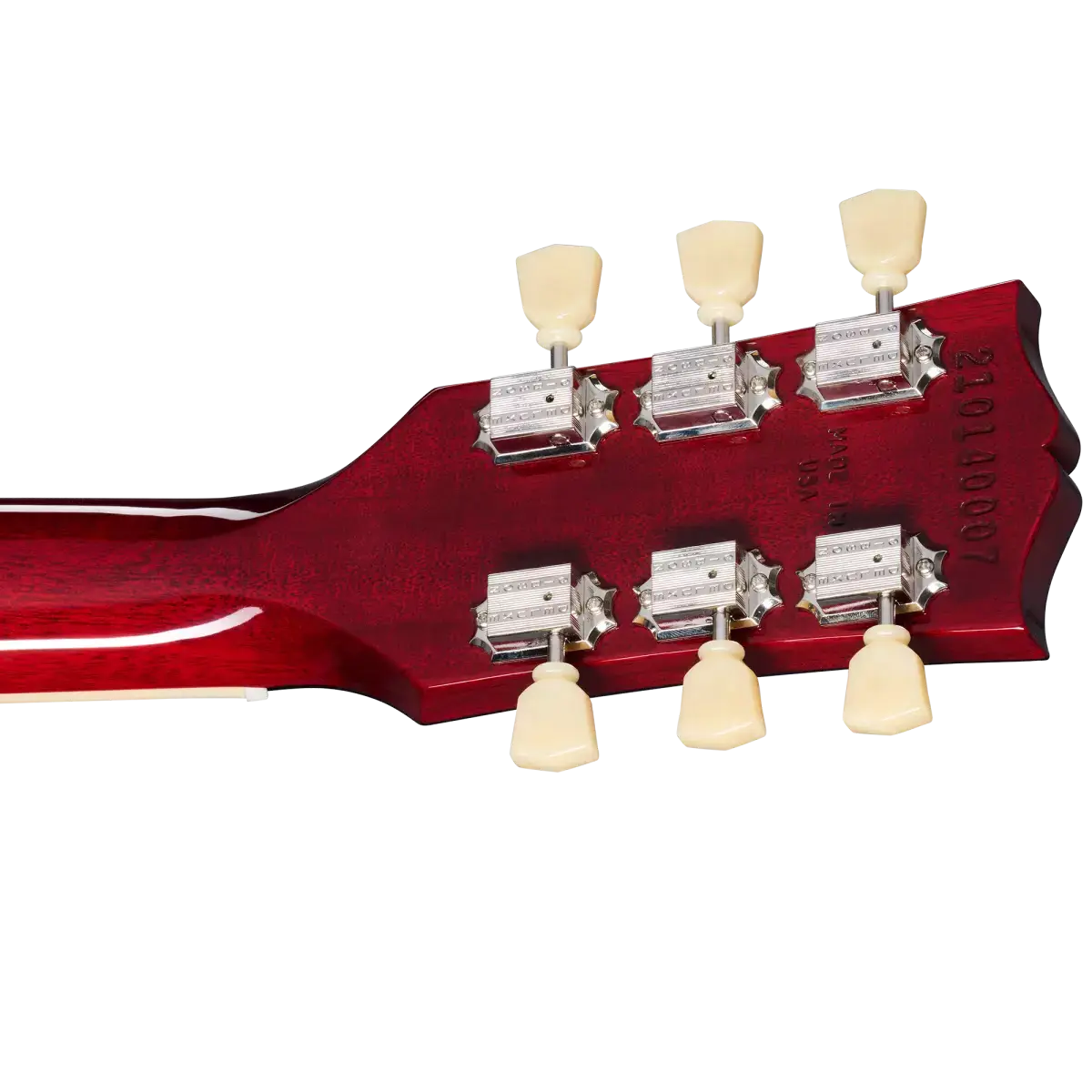 The neck features a traditional heel and a fast-playing SlimTaper™ profile, and it is capped with a bound rosewood fretboard that is equipped with acrylic trapezoid inlays and 22 medium jumbo frets. The 12" fretboard radius makes both rhythm chording and lead string bending equally effortless, and youre going to love how this instrument feels in your hands. The Vintage Deluxe tuners with Keystone buttons add to the guitar's classic visual appeal, and together with the fully adjustable aluminum Nashville Tune-O-Matic™ bridge, lightweight aluminum Stop Bar tailpiece, and Graph Tech® nut, help to keep the tuning stability nice and solid so you can spend more time playing and less time tuning.