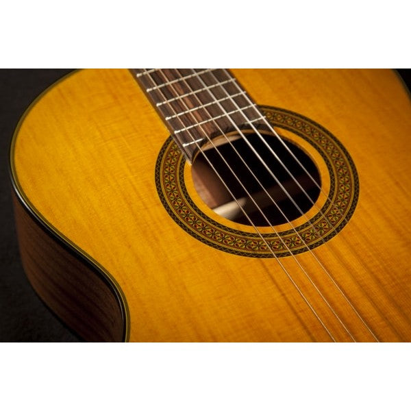 The GC3 is a lovely classical guitar that features solid-top construction, a beautiful gloss finish and all the full, rich nylon-string sound players have come to expect from Takamine classical guitars. Perfect for any player looking for a great all-around classical guitar, the GC3 combines a fan-braced solid spruce top with mahogany back and sides that produce a rich, resonant sound. The comfortable mahogany neck and rosewood fingerboard provide great feel and playability, while the beautiful inlaid mosaic rosette adds a touch of traditional elegance.