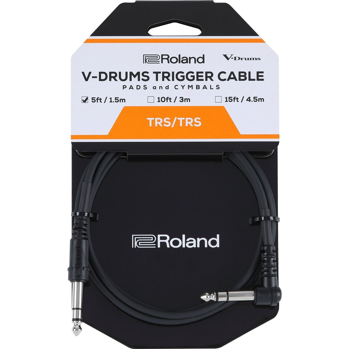 The PCS-5-TRA cable offers a high-quality solution for connecting V-Pads, V-Cymbals, and other Roland percussion triggers to the ¼-inch analog trigger inputs on V-Drums sound modules and Roland percussion pads. The right-angle side has a low profile for discreet connections, and the durable-yet-flexible jacket design provides easy cable management with your drum or percussion stand.