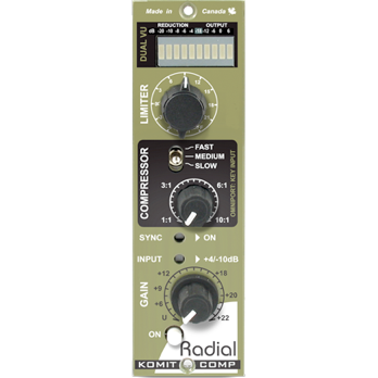 The Radial Komit™ is a feature-rich compressor-limiter that simplifies the process of dynamic manipulation while expanding upon creative tone shaping. At one end is a super-clean compressor that delivers amazing results with single knob control. At the other, an old-school diode bridge clipping limiter goes from 'vintage to nasty'. But don't let the minimalist approach deter; the Komit provides exceptional flexibility by integrating a series of automatic functions that are both musical and intuitive. Close your eyes and listen… the Komit does the hard work for you.