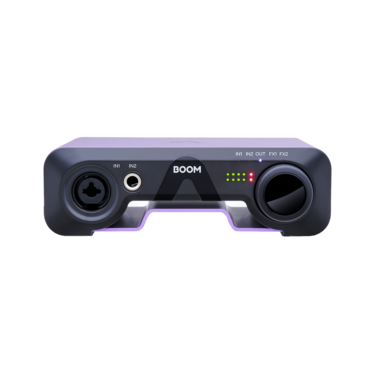 - Boom's preamp can power the most demanding mics with up to 62 dB of clean, noiseless gain — letting your tracks stand out.