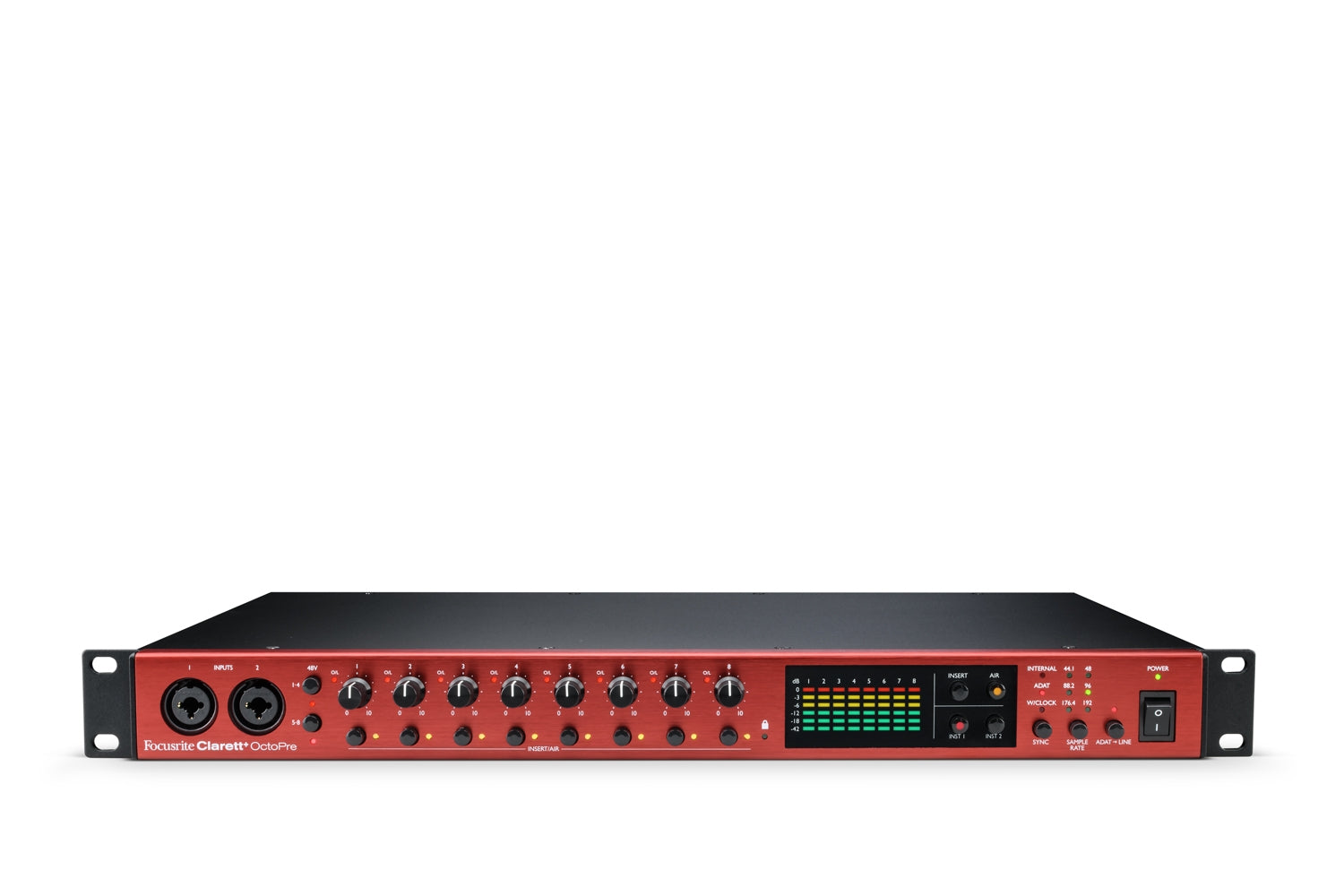The Clarett+ OctoPre is the eight-channel ADAT preamp for both the aspiring and established engineer. Eight high headroom, low noise, and low distortion Clarett+ preamps — featuring All-analogue Air with relay-controlled circuitry — capture drums, vocals, and acoustic instruments with superb clarity. Two JFET instrument inputs capture the true characteristics of guitars, just like plugging into an amp.