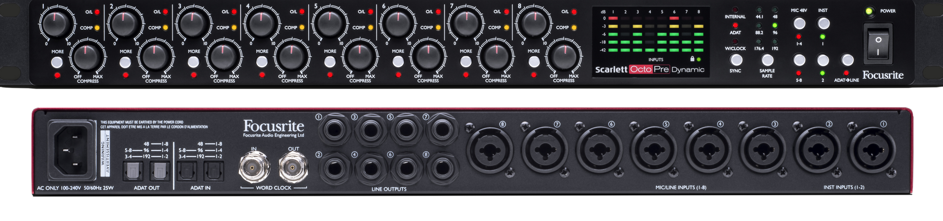 Eight channels of Focusrite precision A-D will capture your performance with clarity, honesty and transparency and providing you have an ADAT output on your interface, eight channels of D-A get it back out again via the balanced line outputs. With dual ADAT optical inputs and outputs, it's ideal for expanding your studio's I/O.