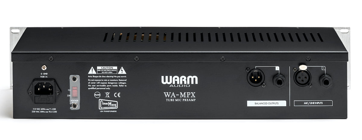 Premium Components - Elite Build Quality - Superior Sound Three premium vacuum tubes, two 12AX7s & one 12AU7 per channel, the WA-MPX delivers both high headroom and harmonically-rich vintage analog tone only found in the most unattainable tube microphone preamps on the market. American-Made Transformer From CineMag The history of CineMag transformers goes all the way back to the 1940s with connections to some of the most sought-after audio equipment of the last century. The particular CineMag output transformers inside with WA-MPX pres are custom-wound with a very large core. Like all CineMags, the input & output transformers on WA-MPX are American-made and built to exacting standards. The huge headroom and added analog color of the transformers pair beautifully with the premium tubes inside WA-MPX. Technical Specifications (Per Channel) Authentic Reproduction Of The Most Revered Tape-Era Tube Preamp Fully Discrete, Hand-Built Construction With 3 Tubes Per Channel For Ultimate Analog Tone Selectable Tape Saturation Adds Harmonic Distortion & Natural Compression 90dB Of Analog Tube Gain Per Channel Custom-Wound, Large-Core CineMag USA Transformers Mic Input: 600Ω Transformer (6000Ω Rated) Mic Input With “Tone” Engaged: 150Ω Transformer (1500Ω Rated) Premium (2X) 12AX7 & (1X) 12AU7 Vacuum Tubes 600Ω Output Attenuator Engage High Gain Control For An Added 20db (From 70db To 90db) Of Clean Gain For Low-Output Mics And Low-Volume Sources 48v Phantom Power & Polarity Switch Classic Warm Audio Tone Control That Alters The Input Transformer Impedance Adding Extra Analog Color 80Hz High-Pass Filter To Control Unruly Bass Frequencies 2kHz Low-Pass Filter To Focus Preamp Power & Warmth On Mids For Added Punch.