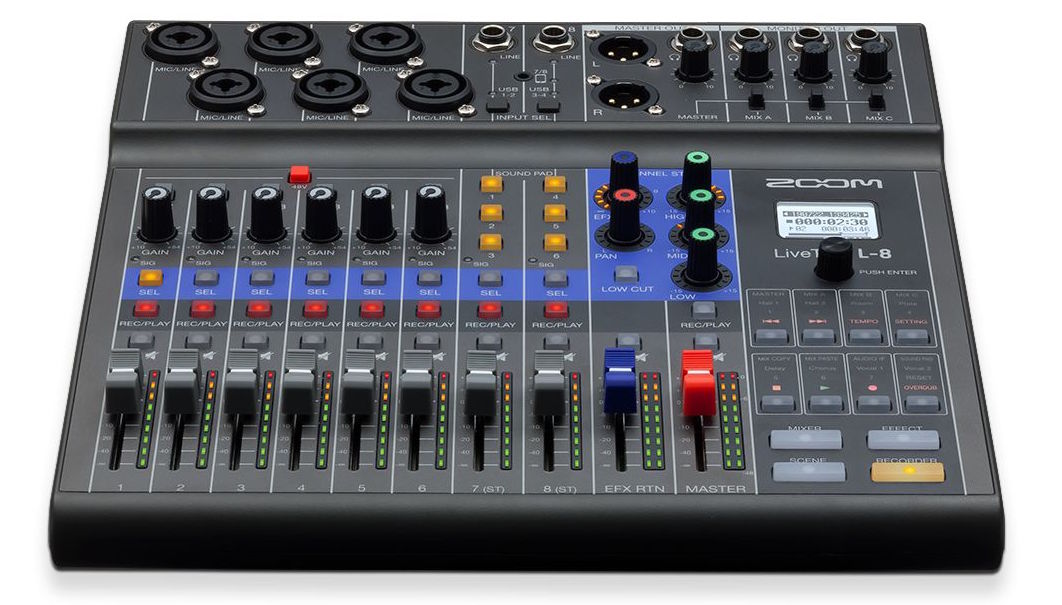 Zoom’s preamps are famous for a good reason: they’re transparent, powerful and ultra-reliable. The L-8 features six independent Zoom preamps, built to handle anything from a whisper to a raucous debate.