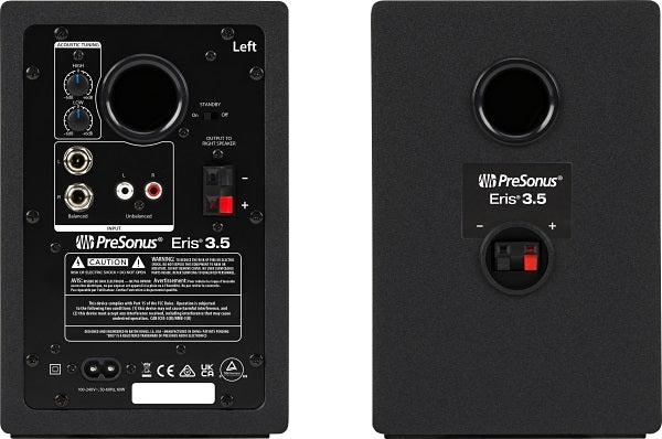 - PreSonus® Eris® 3.5 reference monitors connect to virtually any line-level audio source, using rear-panel, ¼-inch TRS and RCA inputs and a front-panel, ⅛-inch, stereo line input. You also get a convenient (and loud!) front-panel, ⅛-inch, stereo headphone jack; connecting headphones mutes the speakers.