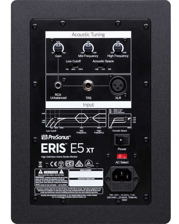 -Acoustic Space settings (flat, -2, -4 dB) for accurate mixing contour
