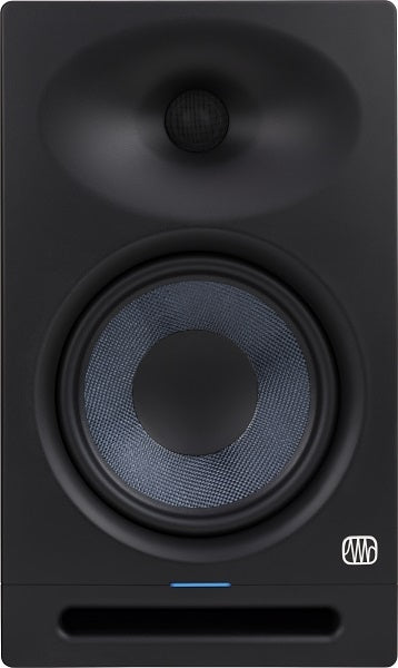 - The woven-composite, 8", low-frequency driver offers Eris' signature tight, clear bass with plenty of punch. Its 140 W of biamped power make the Eris Studio 8 more efficient than previous designs. The ported enclosure maximizes bass response and allows the Eris Studio 8 to reach down to an astonishing 35 Hz - with no subwoofer!