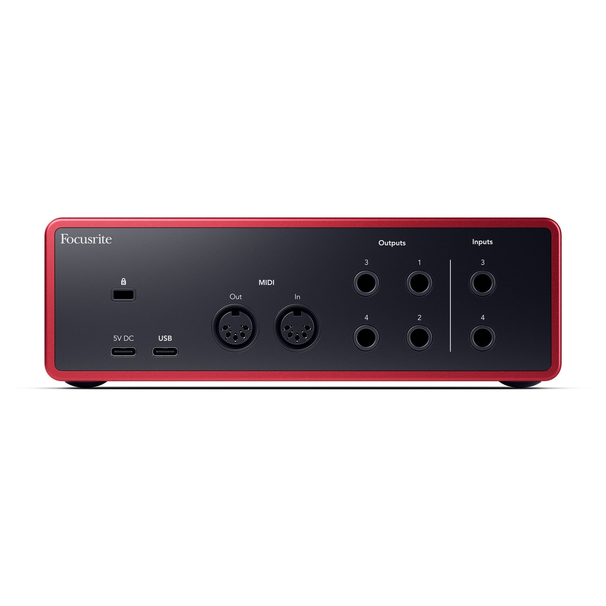 - Scarlett 4i4 is the complete compact studio hub for all your instruments. Perfect for multi-instrumentalists and collaborators, 4i4 is loaded with I/O for everything. Two of our most detailed ultra-low-noise mic preamps. Hi-Z, line and MIDI connections for your keys, guitars, synths, grooveboxes and controllers. With 4i4 your headphones, monitors, and line outs each get their own mix, so you can match the studio setup to the session.