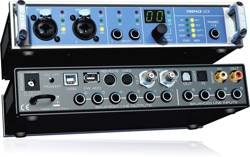 The Fireface UCX is a highly integrated pro audio solution in an ultra-compact format for studio and live recordings. It continues RME's long tradition of designing compact high-end interfaces, packing into a half-rack size unit what usually would be spread out over two or three 19 inch panels.