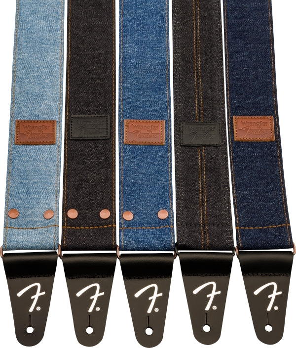 A strap that fits as comfortably as your favorite pair of jeans, the Fender® x Wrangler® Denim Straps are the perfect way to add more flair to your Fender. True to the iconic pocket design, these straps feature gold stitching, custom leather patchwork, and copper rivets and hardware.