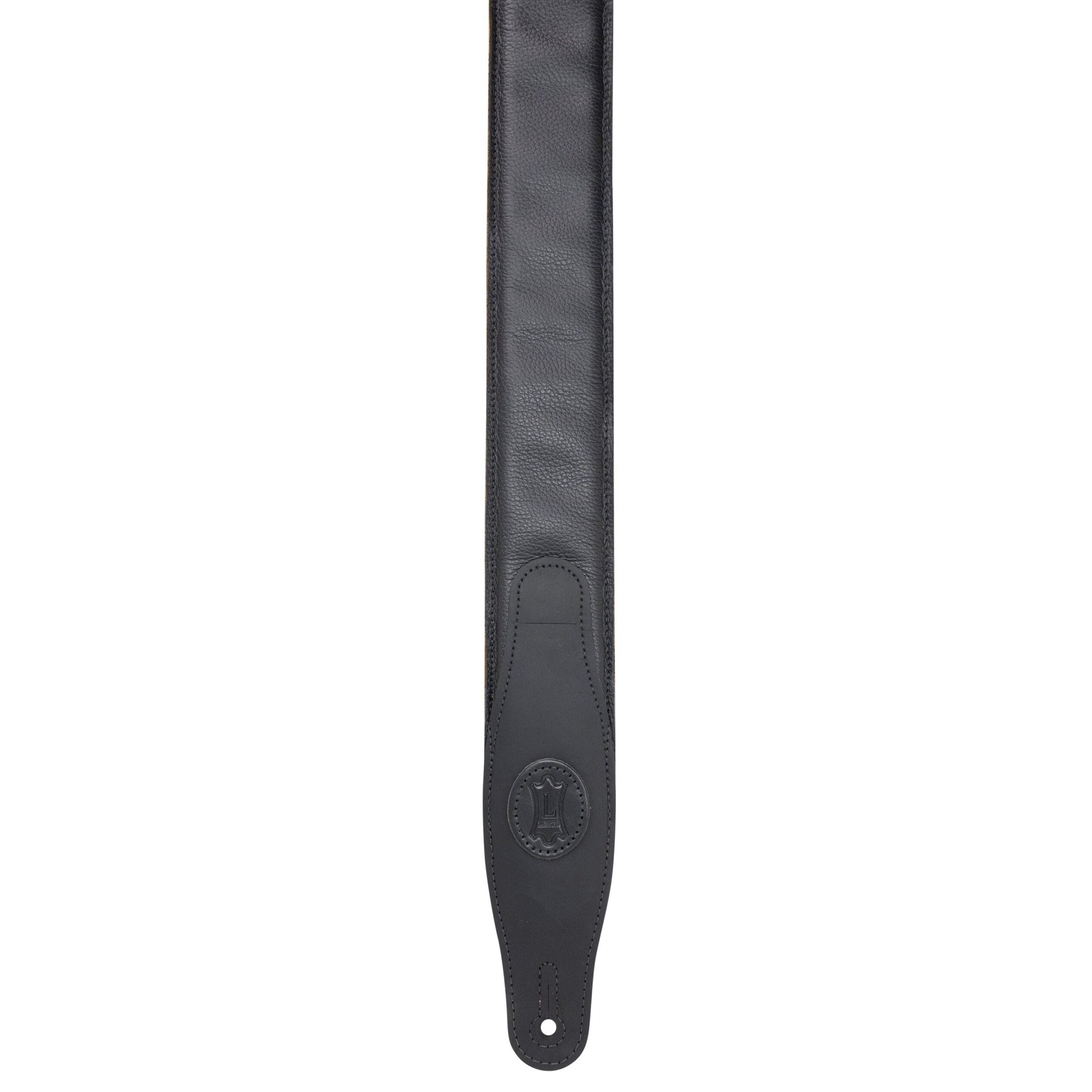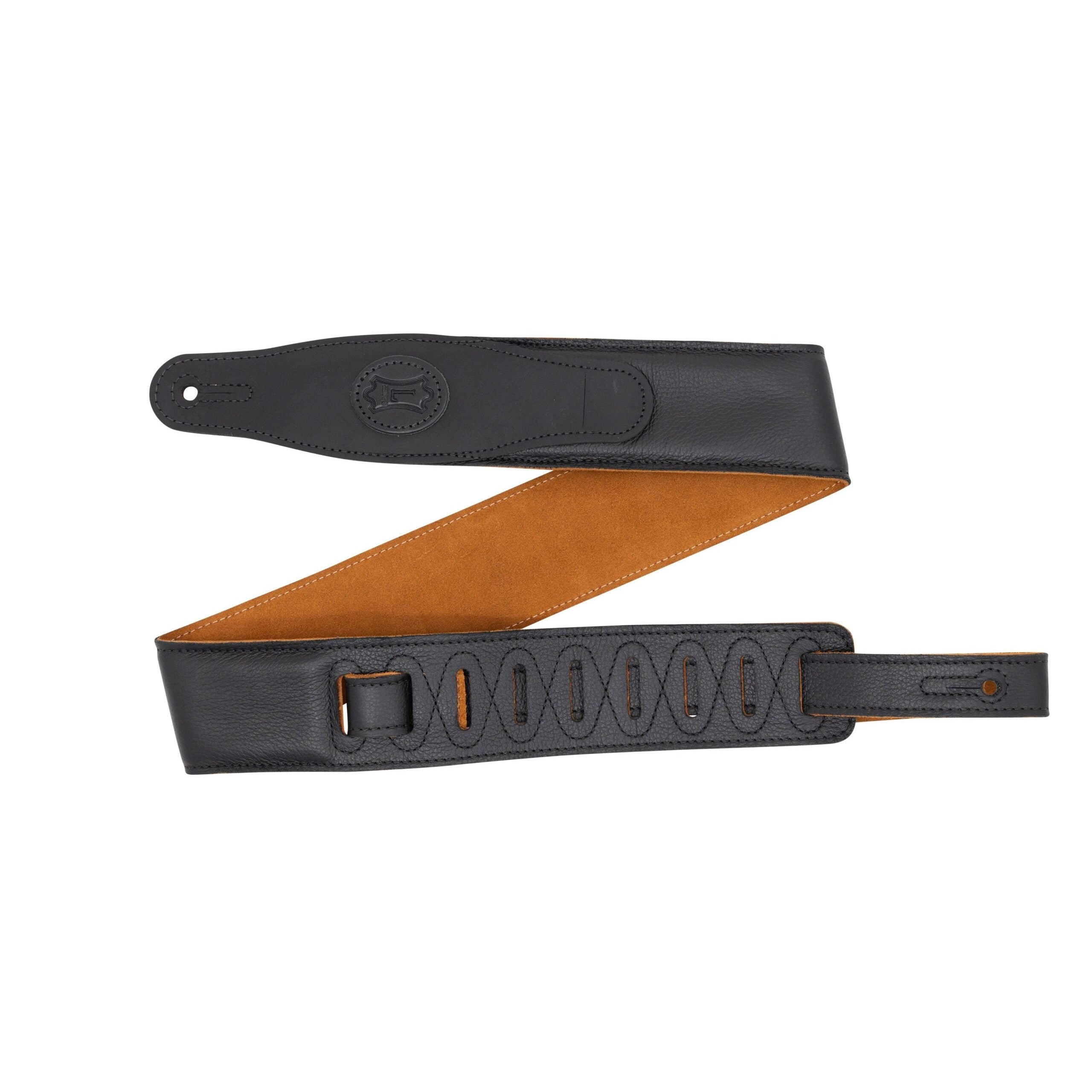 - 2.5″ Black Padded Garment Leather Guitar Strap with Honey Suede Backing