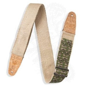 Levy’s 2″ hemp ‘vegan’ guitar strap with printed illuminati design on natural hemp webbing with 2-ply cork ends.