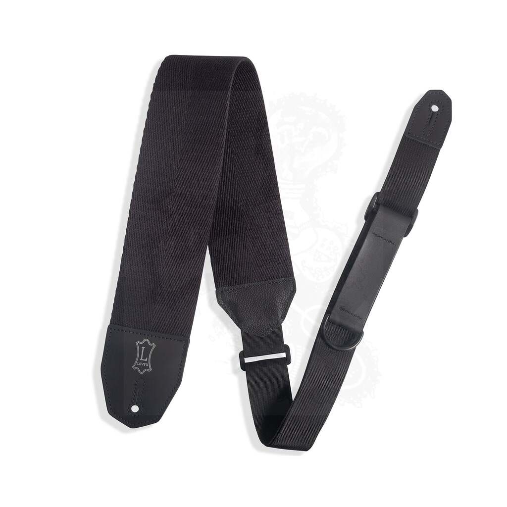 3 inch Right Height Black Cotton Leather Guitar Strap Featuring RipChord Technology™ for Easy Adjust. Black Webbing And Leather With Polyester Webbing Adjustable From 43 to 57 inches.