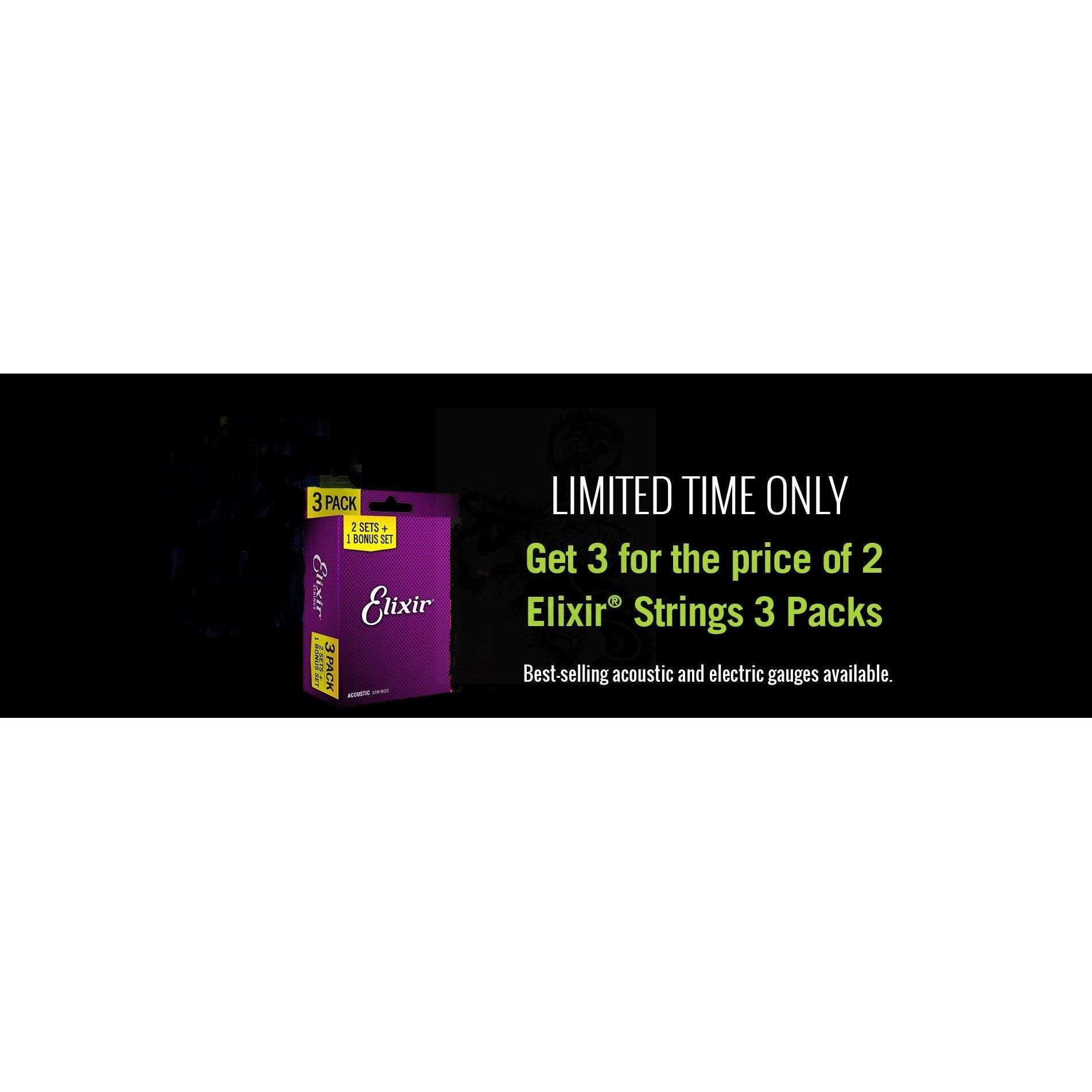 Get more of a good thing for less with Elixir® Strings 3 Packs. For a limited time, get 2 sets plus a bonus set and you’ll be ready to play for a long, long, long time.