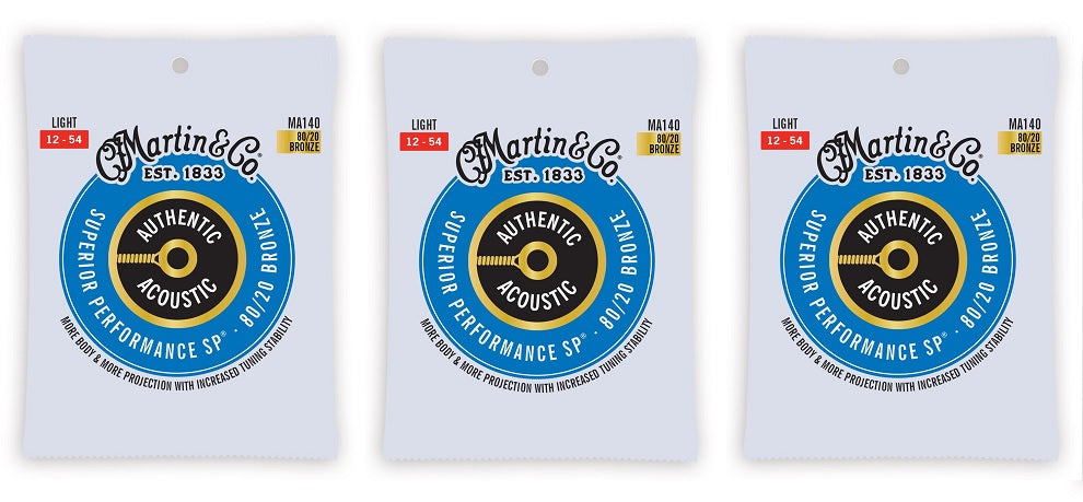 Martin - Authentic Acoustic SP Guitar Strings 80/20 Bronze MA140 Light 12-54 (3-pack)
