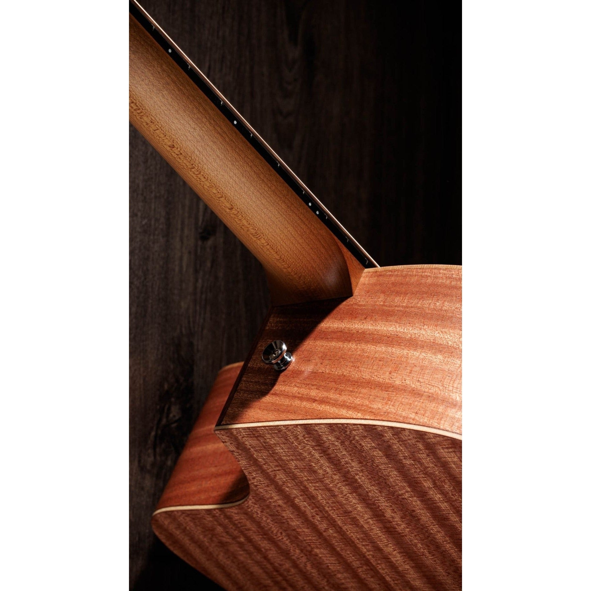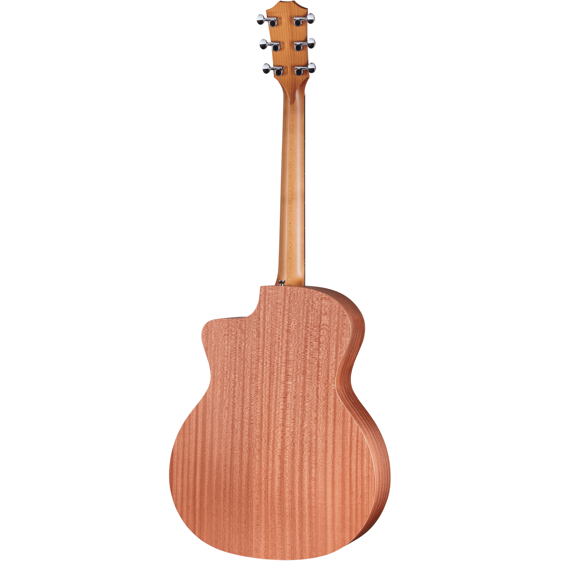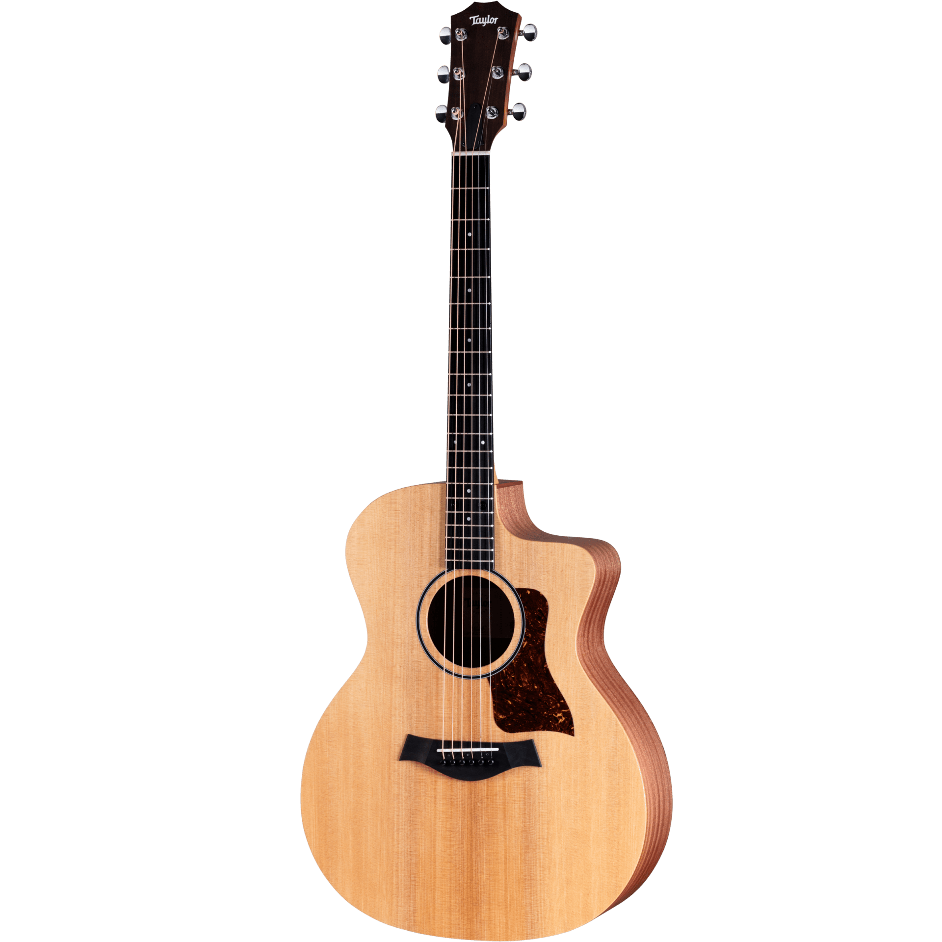 Offering the accommodating feel and vibrant sound of a full-size, standard-scale cutaway Grand Auditorium, the Taylor 14ce delivers great value for players in earch of a versatile, reliable acoustic-electric. Layered African sapele back and sides paired with a solid torrefied spruce top produce a clear, articulate voice with impressive projection and a touch of sweetness, thanks to our special roasting process that adds warmth and maturity to the tone. Cantilevered V-Class voicing architecture inside the guitar enhances the sustain, volume and low-end response, while a slender, heelless maple neck delivers familiar Taylor playability. Minimalist appointments like a matte finish, 4-mm dot inlays and faux-tortoiseshell pickguard add to the 14ce's understated visual appeal. It ships in a gig bag with an onboard Fishman Sonitone GT-2 pickup for amplified play across a wide range of musical settings.