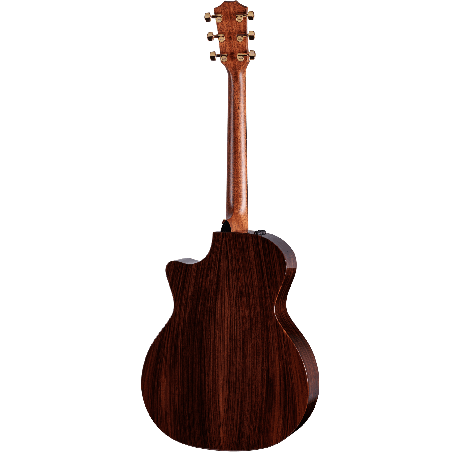 Crafted to celebrate the legacy of the iconic Hollywood Guitar Center store, the Sunset Boulevard 414ce Studio SEB boasts a beloved tonewood pairing complemented by a striking aesthetic package. This versatile Grand Auditorium features back and sides of solid Indian rosewood paired with a torrefied Sitka spruce top, producing a clear, balanced voice with warm lows, bell-like highs and exceptional volume and sustain thanks to our V-Class bracing inside. The special roasting process used for the spruce top adds a new sonic dimension with a sweet, aged-in quality normally found in older, more played-in guitars. Visual appointments include a full-body gloss finish with a Sunset Edgeburst top treatment, gold hardware, a faux-tortoiseshell pickguard and Taylor 50th Anniversary Diamond fretboard inlays. Chamfered body edges and a slightly narrower nut width of 1-11/16" provide an exceptionally relaxed feel. This model includes ES2 electronics and a deluxe hardshell case.