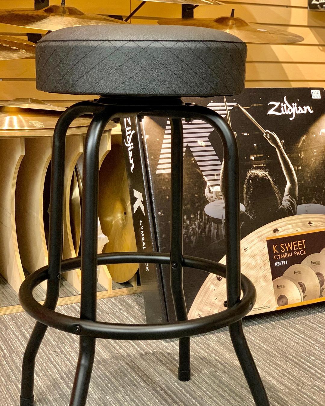 Constructed from heavy-gauge 1" tubular steel with a powder-coated finish, the thick, foam-padded seat top consists of commercial-grade black leather-style vinyl and features a debossed Zildjian logo and stylish side-stitching. With a 360-degree revolving swivel, a foot ring for hooking your heels and non-slip rubber feet, this stool is as comfortable as it is stylish.