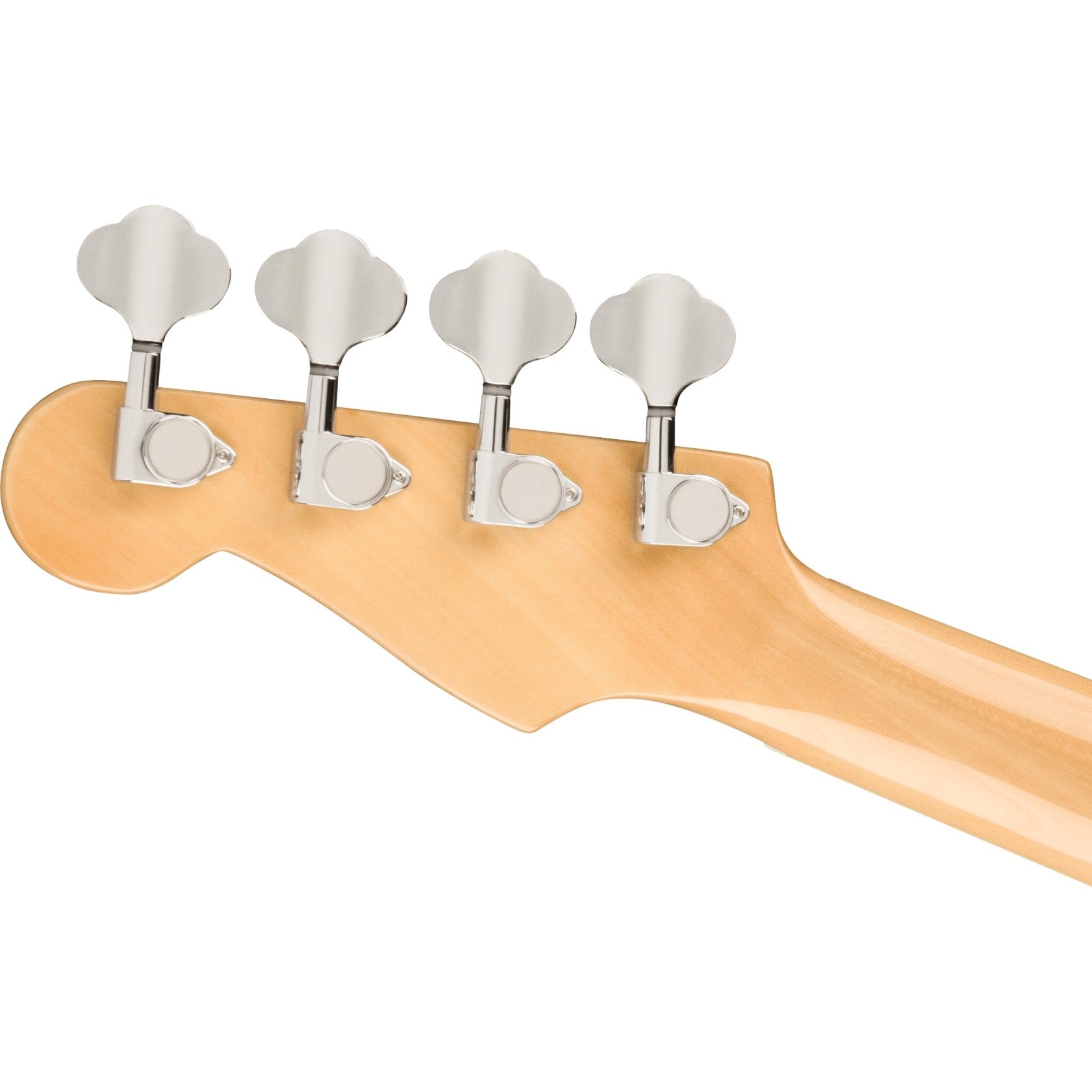 A celebration of Fender's pioneering electric bass design in a refreshingly fun size, the Fullerton Precision Bass® ukulele is nothing short of electric. Uniquely portable and performance-ready, the Precision Bass ukulele features an approachable 20.25" scale length, compact proportions and surprising lightness, making it remarkably easy to pick up and impossible to put down. With a built-in tuner for on-the-fly adjustment and intuitive controls for volume and tone, the on-board preamp packs an articulate low-end and big tonal personality that punches far above its weight. Offered in classic Fender colors with a signature Precision Bass pickguard and headstock shape, this bass is ready to lay the foundation for any player at any stage.