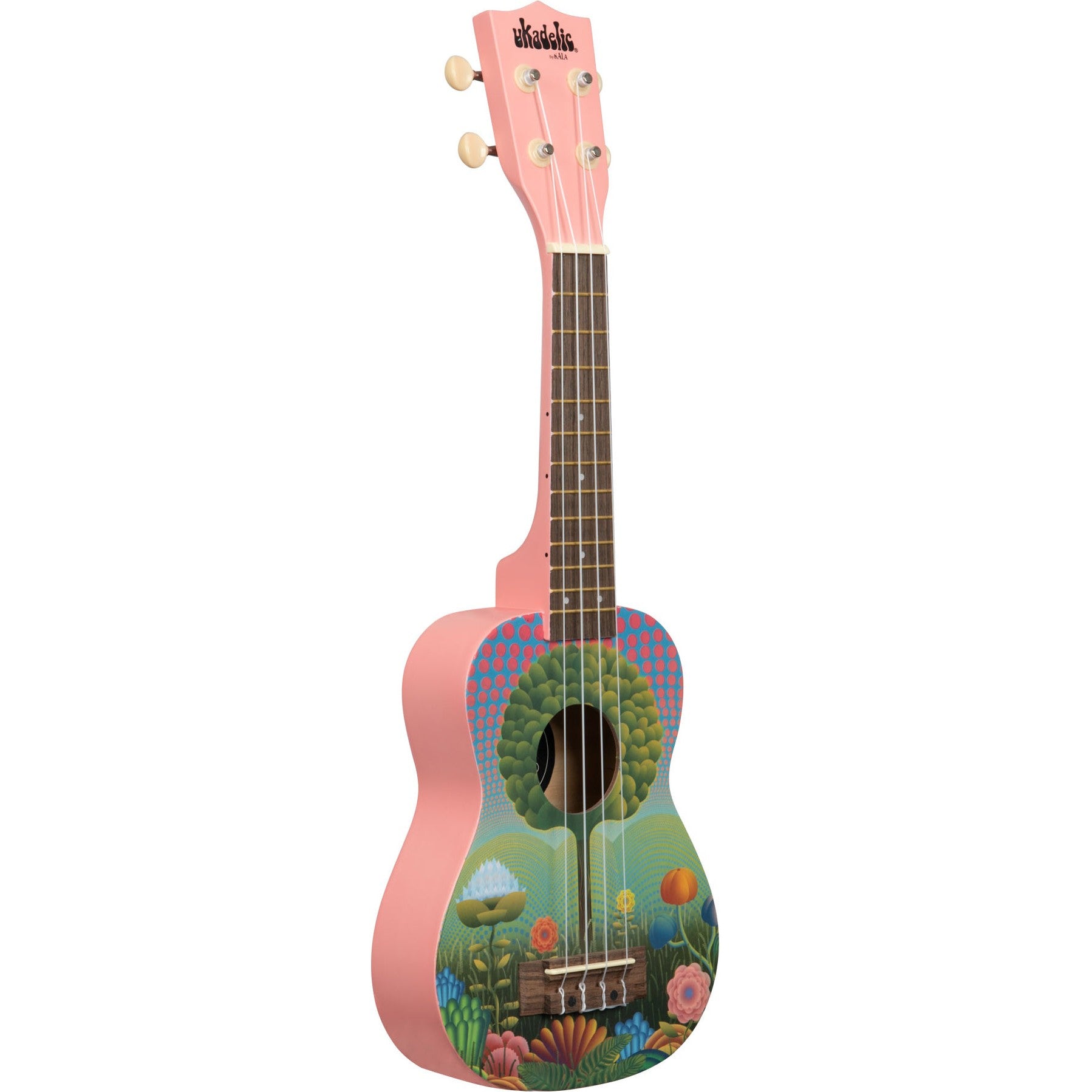 With help and inspiration from the Kala community, we present 6 original designs for the all new wood Ukadelic® Graphic ukuleles. Each one tells a story and makes this new line-up of Ukadelics truly magical! Let them capture your imagination! Available in Soprano with logo bag and packaging. MEASUREMENTS Scale Length: 13.5 inches, Overall Instrument Length: 20.625 inches, Body Length: 9.0625 inches, Number of Frets: 12, Width at Upper Bout: 5.4375 inches, Width at Lower Bout: 7 inches, Width at Waist: 4.75 inches, Body Depth: 2 inches, Fingerboard Width at Nut: 1.4375 inches, Fingerboard width at neck/body joint: 1.75 inches.