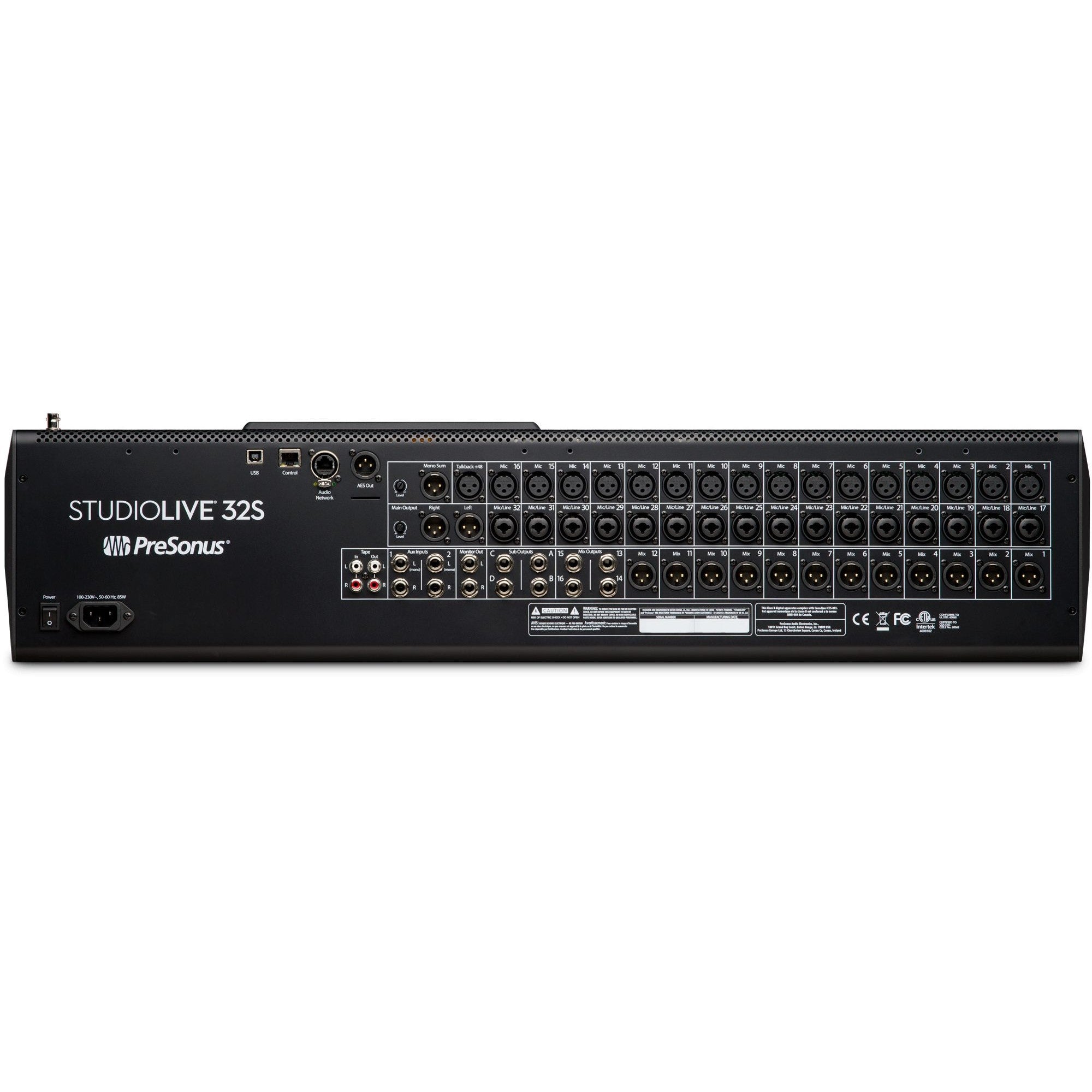 The StudioLive 32S is a powerful 32-channel mixer that provides the ultimate mixing experience, packing large format features into a small format chassis. Powered by the dual-core PreSonus FLEX DSP Engine, the StudioLive 32S digital mixer is equipped with 40 mixing channels, 26 mix buses, and 286 simultaneous processors—including 4 stereo reverberation systems, and Fat Channel plug-in models on every input channel and mix bus. With 128 (64x64) channels of USB recording, 128 channels of AVB network audio I/O, flexible routing options, and studio-grade audio quality, the StudioLive 32S delivers a fast and intuitive, surface-driven workflow for total control. Spend less time menu-diving and more time mixing—hands-on.