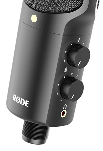 The body of the NT-USB features a zero-latency stereo headphone monitoring (3.5mm) jack, which allows users to monitor the microphone input in realtime, along with dials to adjust the monitoring level and mix between the computer/iPad audio and the microphone input.