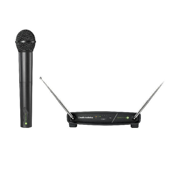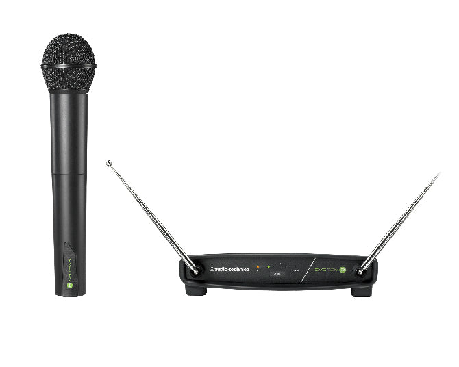 Easy operation and clear, natural sound quality 4 selectable frequency-coordinated VHF channels Balanced XLR and unbalanced 1/4" output jacks enable use with a wide variety of audio gear Reliable performance and durable construction Advanced dipole antenna system for extended operating range ATW-R900a receiver and ATW-T902a handheld dynamic unidirectional microphone/transmitter. Includes AT8456a Quiet-Flex™ stand clamp.