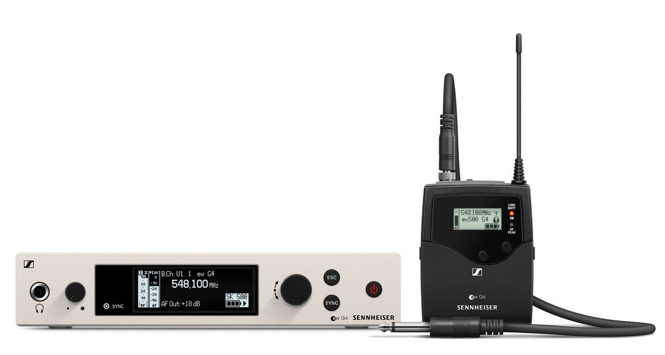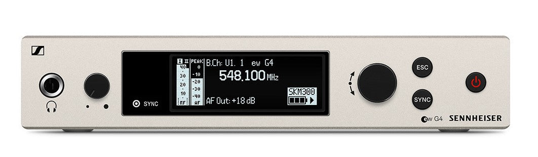 Overview The pro‘s choice. Renowned sound engineers rely on ew 500 G4‘s flexibility, especially when handling multi channel settings on the world‘s music stages. Up to 88 MHz bandwidth, up to 32 channels. Ethernet connection for Wireless Systems Manager (WSM) control software included for advanced frequency coordination in multi channel setups. The pro‘s choice for perfectly balanced but upfront guitar and bass. Powerful bodypack transmitter and Ci1 instrument cable for unforgettable performances. Features True diversity half-rack receiver in a full-metal housing with intuitive OLED display for full control Easy and flexible wireless synchronization between transmitter and receiver via infrared Up to 32 compatible channels Up to 88 MHz bandwidth with 3520 selectable frequencies, fully tunable in a stable UHF range Ethernet connection for Wireless Systems Manager (WSM) control software for advanced frequency coordination in multi-channel setups High RF output power (up to 50 mW, adjustable in three steps 10/30/50) depending on country regulations What's in the box? EM 300-500 G4 true diversity receiver SK 500 G4 bodypack transmitter Ci 1 instrument cable 2 AA batteries GA 3 rackmount set power supply 2 rod antennas quick guide safety guide manufacturer declaration sheet Technical Data EM 300-500 G4 Frequency range AS: 520 - 558 MHz GBw: 606 - 678 MHz Gw: 558 - 626 MHz Bw: 626 - 698 MHz Cw: 718 - 790 MHz Dw: 790 - 865 MHz Aw+: 470 - 558 MHz Gw1: 558 - 608 MHz Dimensions Approx. 202 x 212 x 43 mm Compander Sennheiser HDX