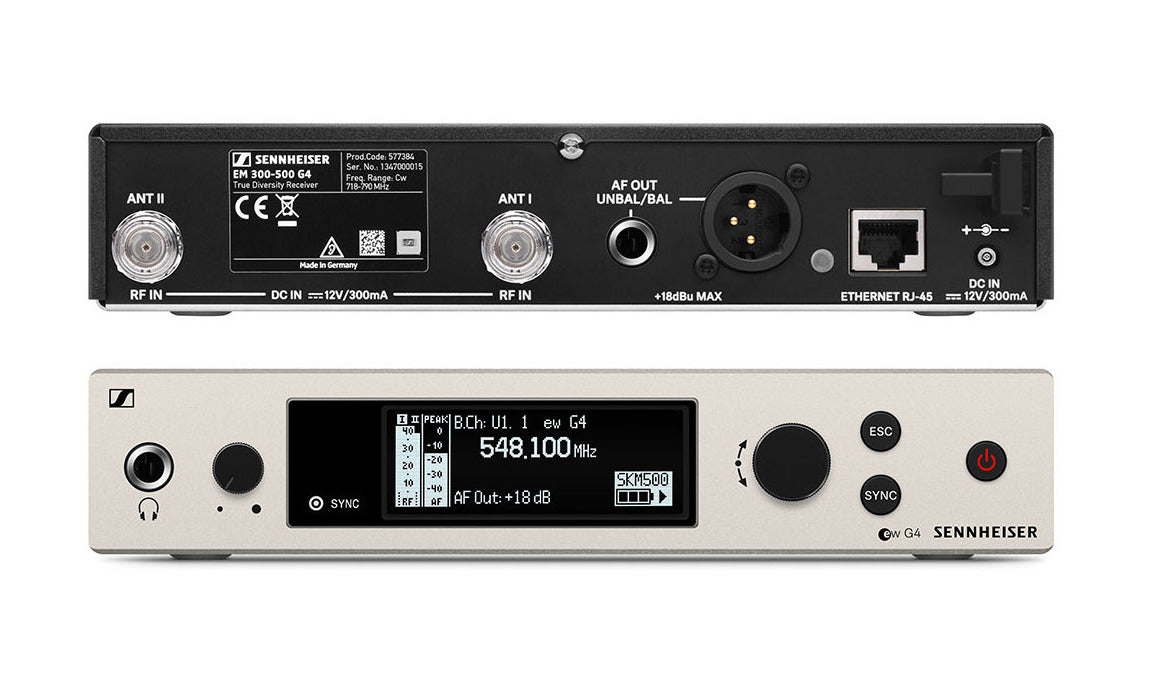 The pro‘s choice. Renowned sound engineers rely on ew 500 G4‘s flexibility, especially when handling multi channel settings on the world‘s music stages. Up to 88 MHz bandwidth, up to 32 channels. Ethernet connection for Wireless Systems Manager (WSM) control software included for advanced frequency coordination in multi channel setups. The pro‘s choice for impressive presentations. The professional MKE 2 Gold omni-directional condenser microphone resists the test of time on any big live stage and ensures a high speech intelligibility on any stage, indoors and outdoors. Features True diversity half-rack receiver in a full-metal housing with intuitive OLED display for full control Easy and flexible wireless synchronization between transmitter and receiver via infrared Up to 32 compatible channels Up to 88 MHz bandwidth with 3520 selectable frequencies, fully tunable in a stable UHF range Ethernet connection for Wireless Systems Manager (WSM) control software for advanced frequency coordination in multi-channel setups High RF output power (up to 50 mW, adjustable in three steps 10/30/50) depending on country regulations