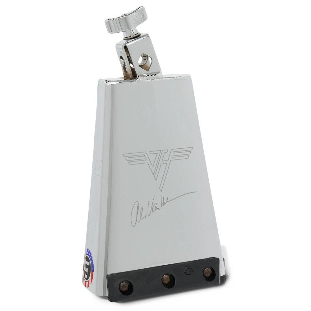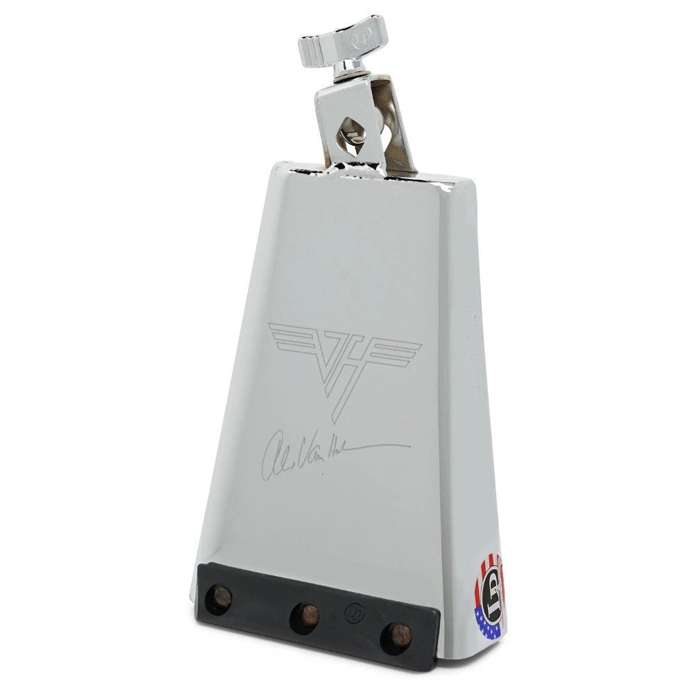Introducing the Alex Van Halen Signature Cowbell from Latin Percussion. Based on LP's classic Bongo Cowbell, this American-made and mountable bell is embossed with both Alex's signature and the iconic Van Halen logo. Additional features include a Jenigor Ridge Rider bar for dampening and durability along with a patented, self-aligning eye-bolt that mounts to any 3/8" to 1/2" diameter rod. This 8-inch chrome-plated cowbell pumps out high pitch with dry overtones, which is great for punching accents into any big rock groove. *