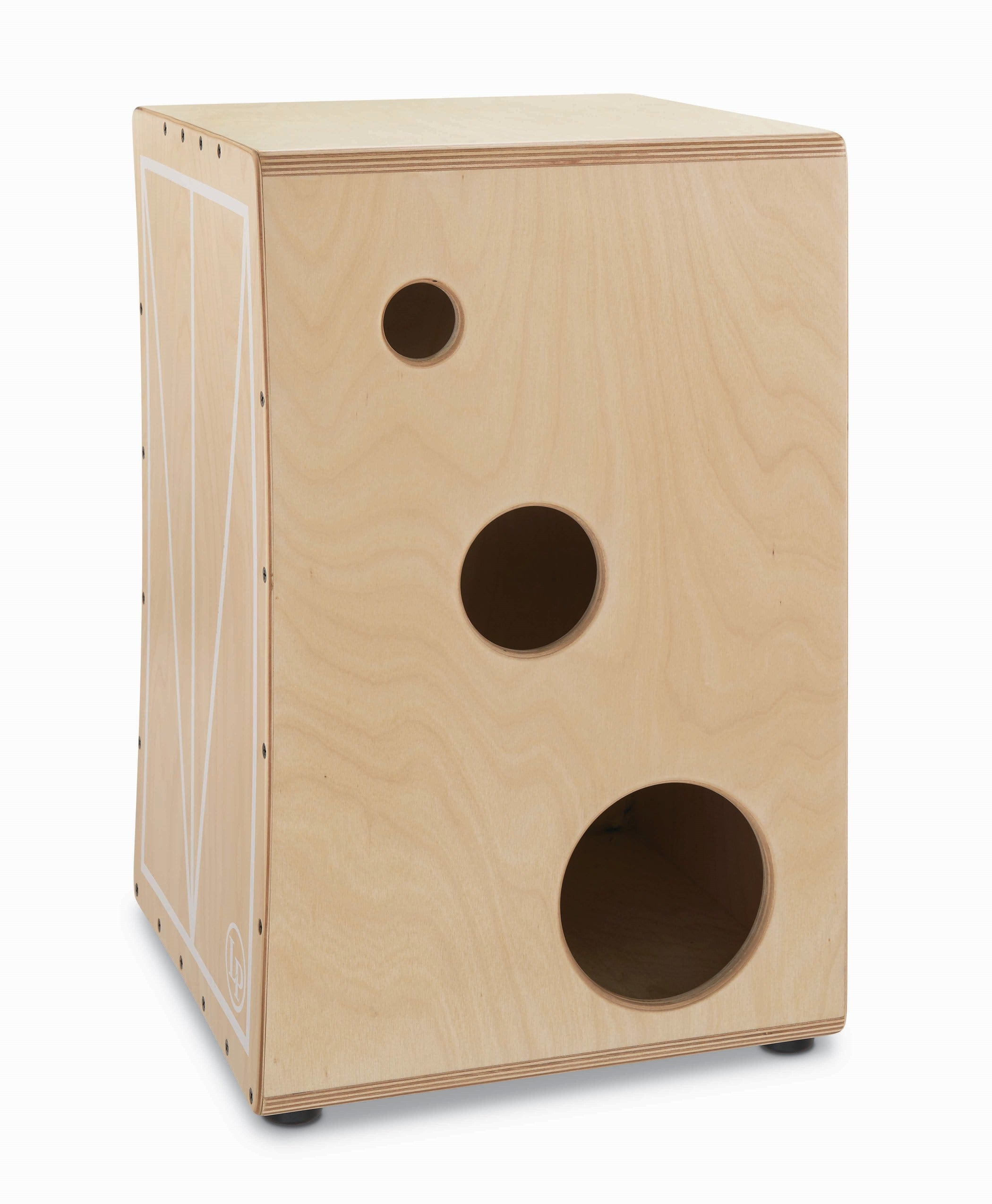 The Mona Tavakoli box cajon features dual playing surfaces, a birch body and birch, Peruvian-style soundboards. Also offers Mona's graduated, proprietary three-sound hole design.
