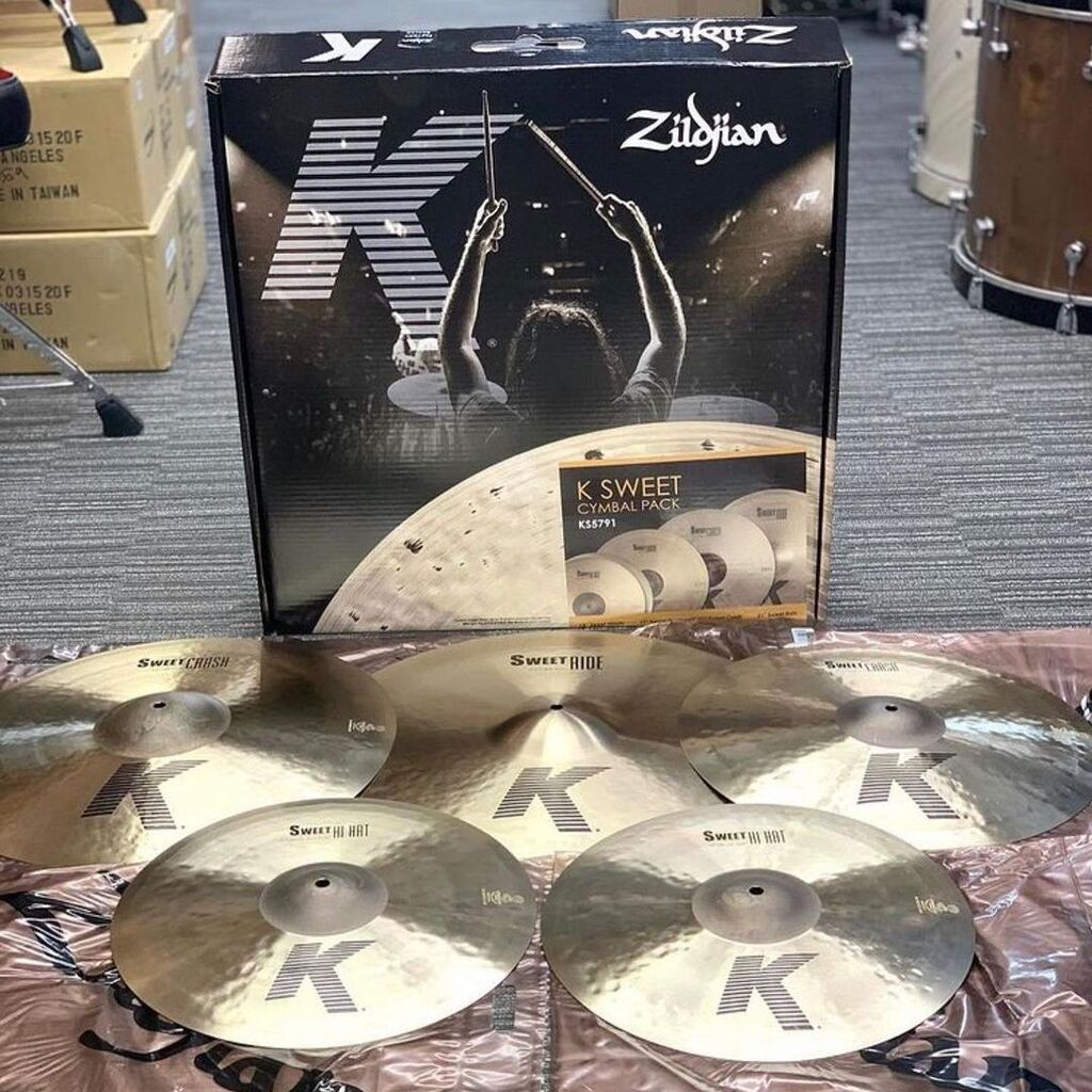 In response to customer demand, the new K Sweet Cymbal Pack offers a full setup of cymbals from the popular K Sweet line. This pack includes larger, darker crashes, and pushes the iconic Zildjian K sound in a new, alternative direction. Featuring some of our favorite K Sweet models, this K Sweet Cymbal Pack extends the rich sounds of the K Zildjian Series in a sweet and responsive new direction that’s great for all types of music. Over sized 15” HiHats feature a thin top and an extra heavy bottom, creating a great wash without sacrificing a satisfying and solid “chick”. The 17” and 19” crashes are extra thin in weight for a fast response, and their unlathed bells create nicely balanced high frequencies. The medium weight 21” ride is crashable, with great stick definition and a clear bell tone. Complete K Sweet setup Oversized hihats create great wash Odd-size crashes are lower pitched and slightly darker 21" Sweet Ride is just thin enough to be crashable