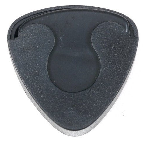 Spring-Loaded, sleek black pick holder keeps picks close at hand