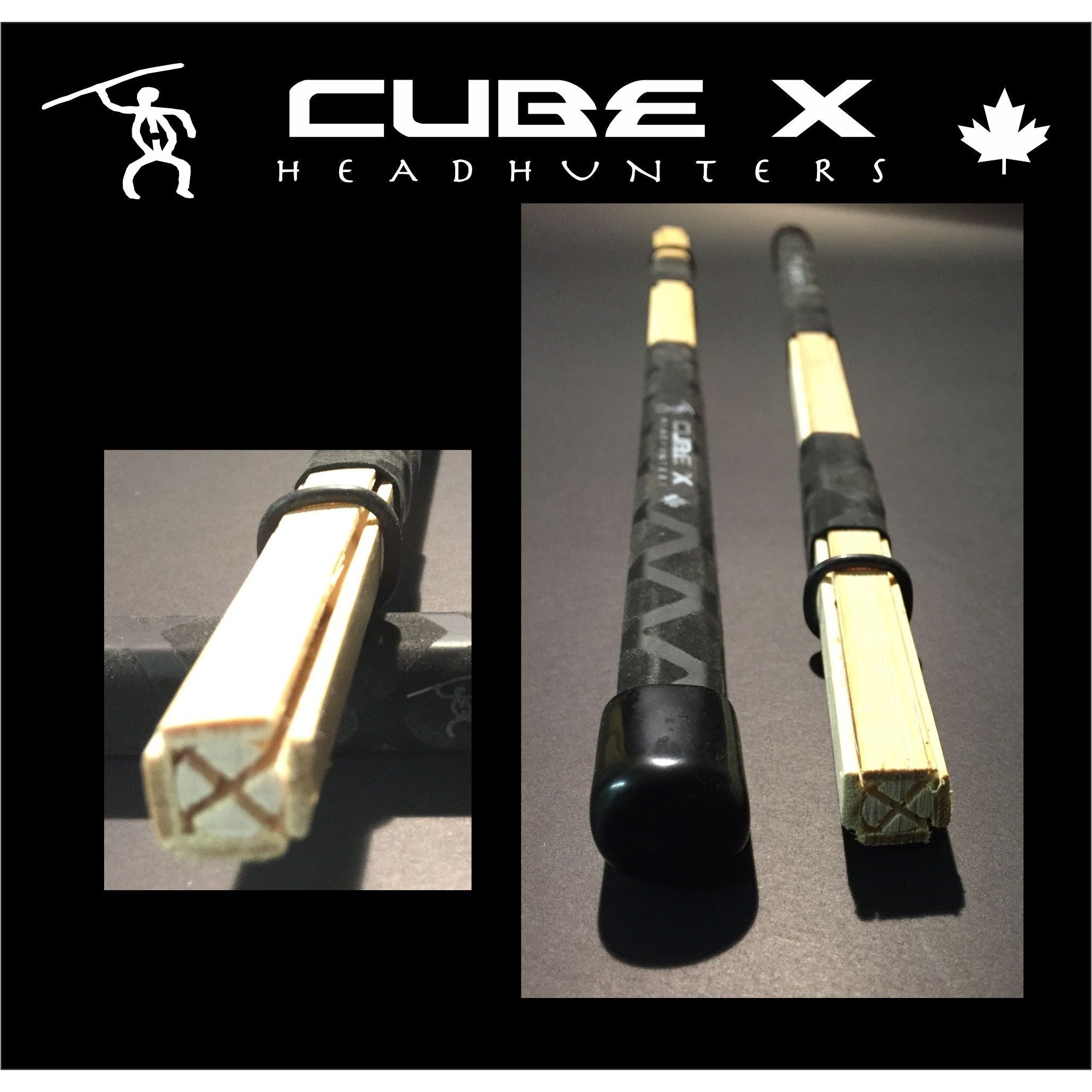 Cube-X are built on the Doobies platform of a double cut centre dowel. The big difference; the exterior 4 premium slatted bamboo surround the double split centre core. These are very tough. By leaving the outer skin on the bamboo, it has increased the strength and density. Where other bundled concepts may fail heavy hitters, these rugged sticks can take a beating! Although these are more dense and heavier, they still provide a quieter impact and make a great specialty stick.