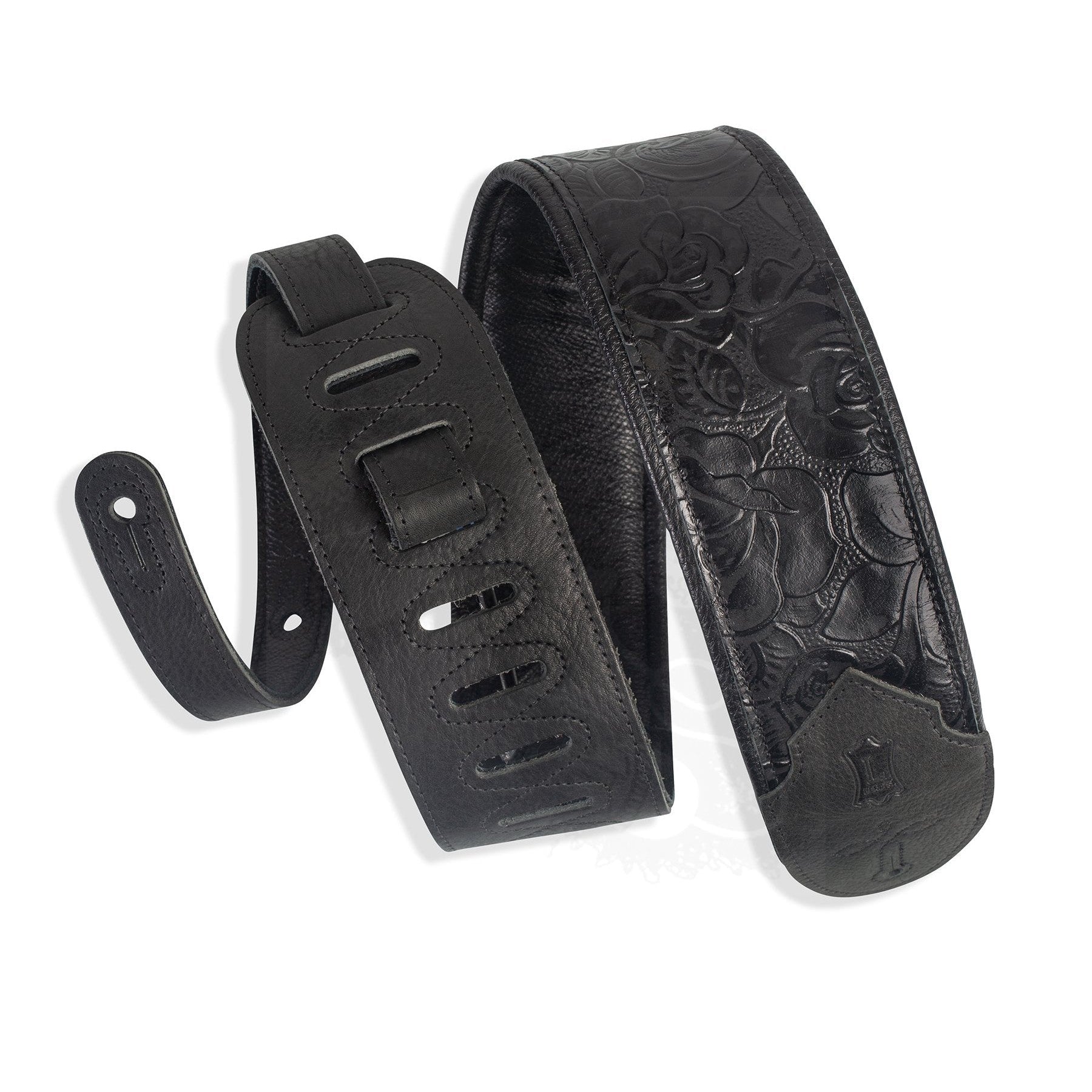 Levy’s 3″ embossed leather guitar strap with supple padding and garment leather backing.