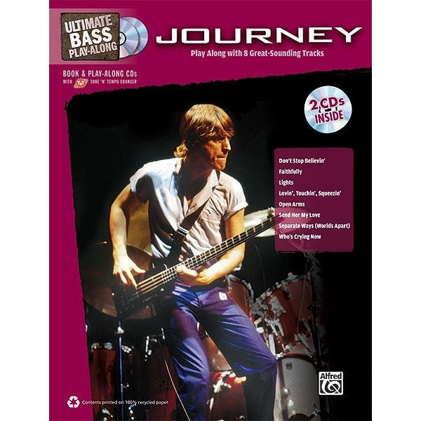 Alfred's Ultimate Play-Along series gives you everything you need to jam with your favorite songs. This book contains authentic TAB transcriptions, music notation, lyrics, and chords to eight Journey classics. There are two versions of every song on the included CDs: an instrumental sound-alike recording, and an instrumental accompaniment track without bass so you can play along. When you use the CDs in your Mac or Windows-based computer, the TNT (Tone 'N' Tempo) Changer lets you easily loop sections for practice, slow tracks down or speed them up without changing the pitch, change the key, and switch back and forth between the full-instrumental and play-along tracks. Titles: Don't Stop Believin' * Faithfully * Lights * Lovin', Touchin', Squeezin' * Open Arms * Send Her My Love * Separate Ways * Who's Crying Now.